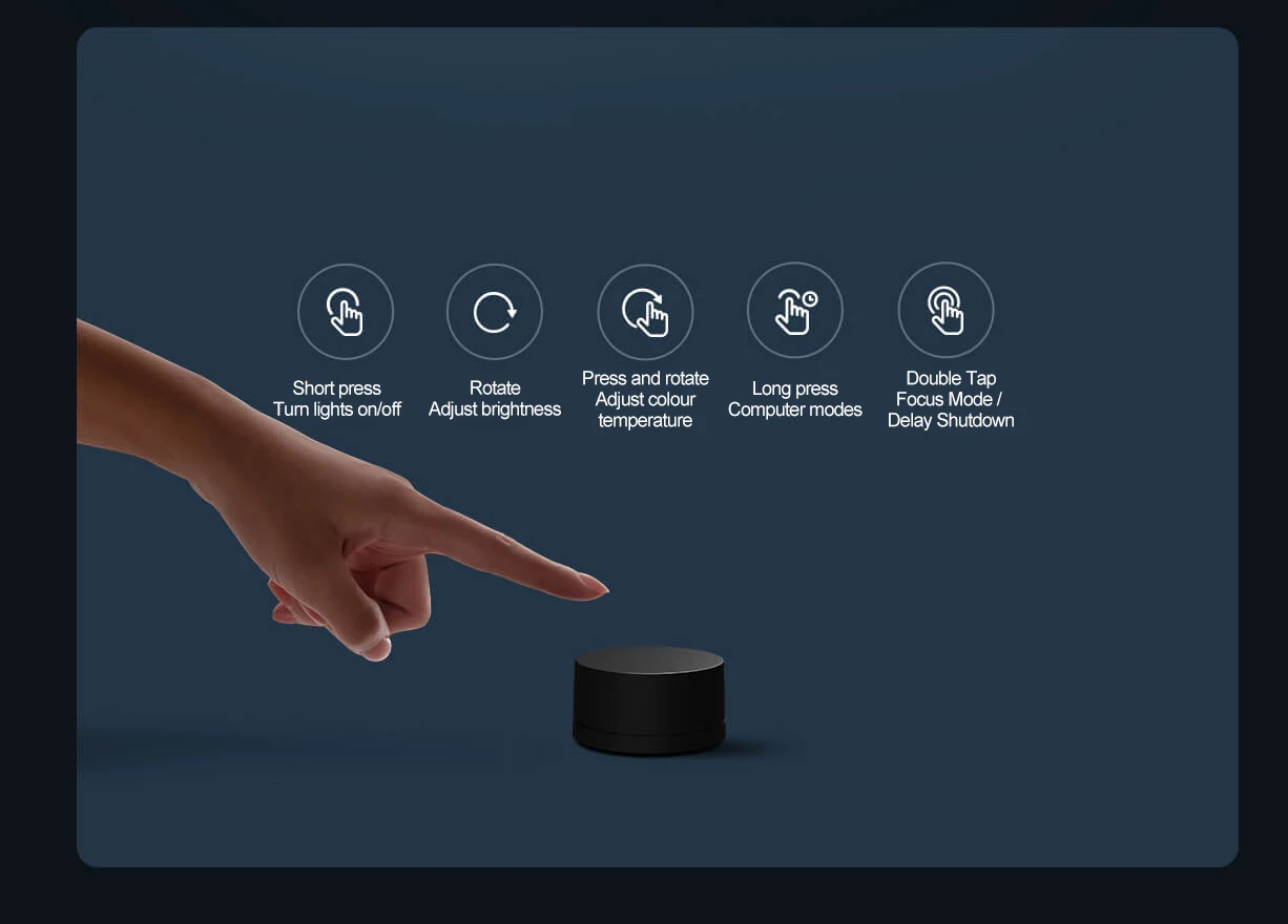 Controle contínuo de temperatura de cor e brilho, modos de iluminação personalizáveis.Um toque, ativação instantânea.
