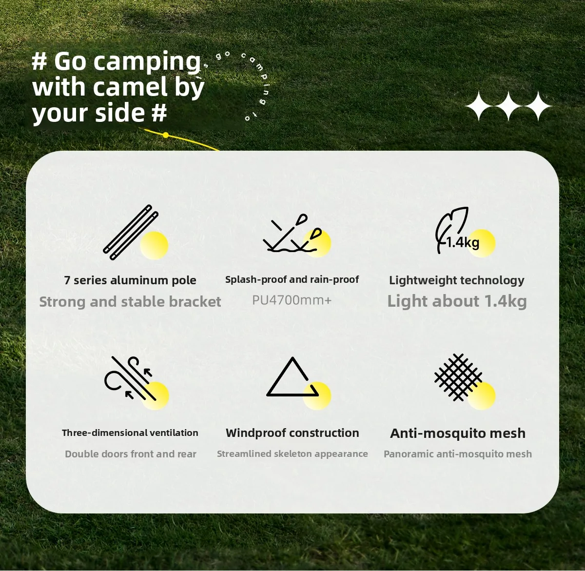 Barraca Golden Camel para 1-2 Pessoas, 20D, Ultraleve, Impermeável, para Viagem, Caminhada, Sobrevivência, Acampamento ao Ar Livre, Abrigo Portátil para Mochileiros