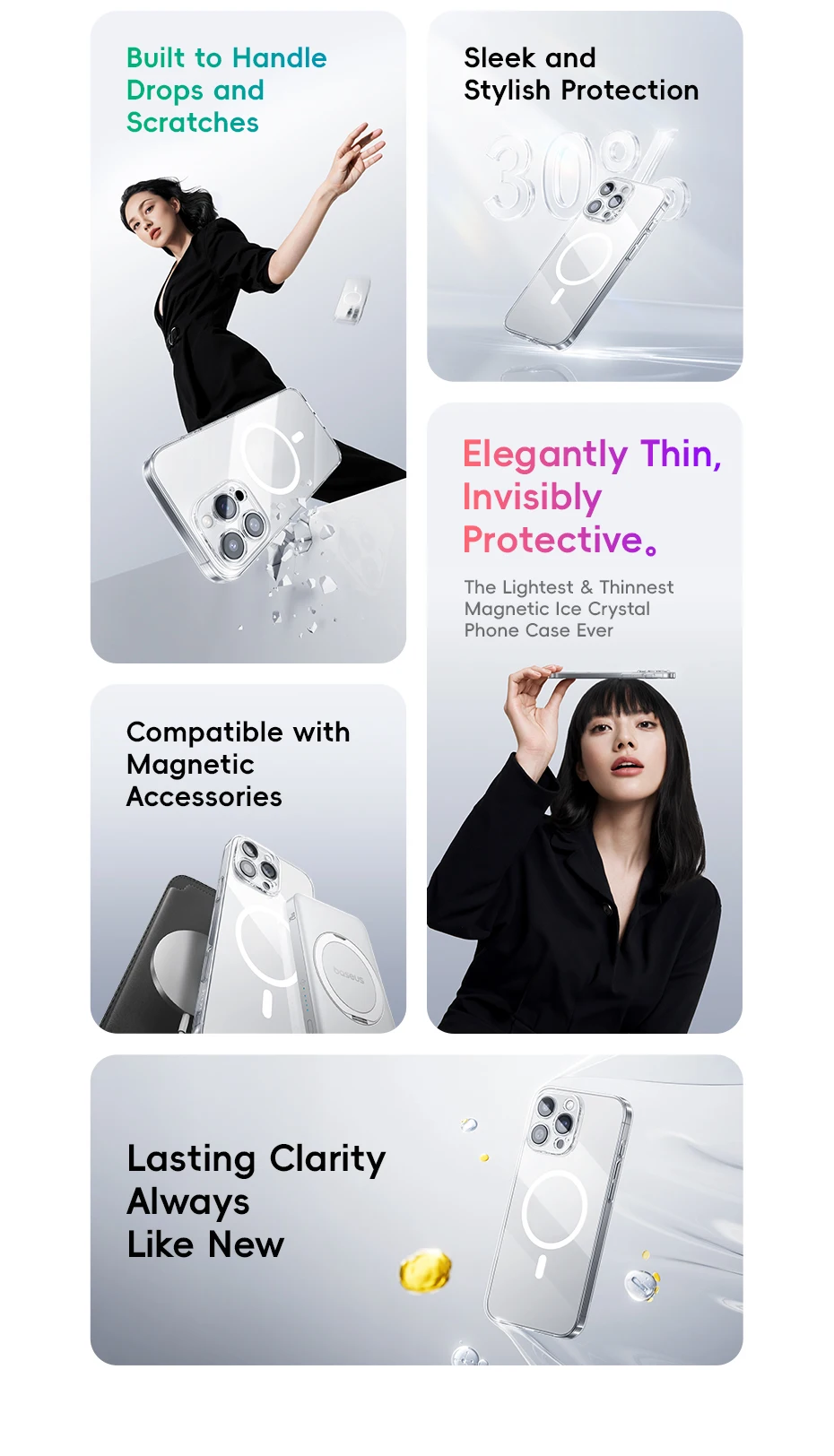 A capa de telefone de cristal de gelo magnético mais leve e fina de todos os tempos.