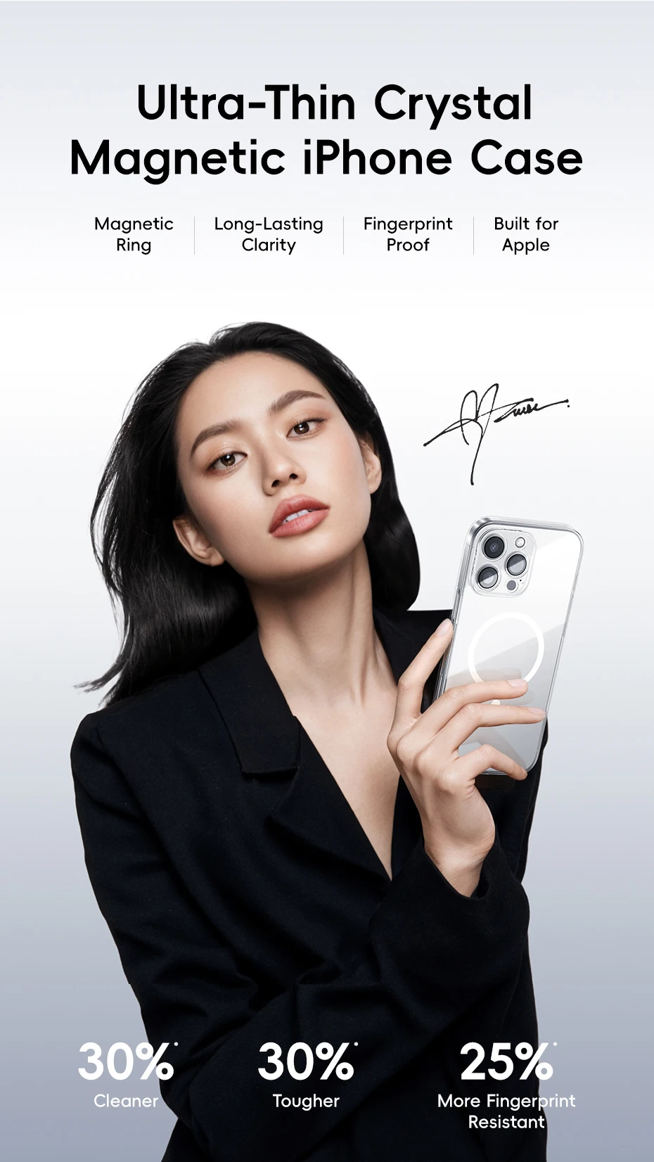 Feature 1: Glossy, Transparent, Clear, Slim, Flexible, Crystal