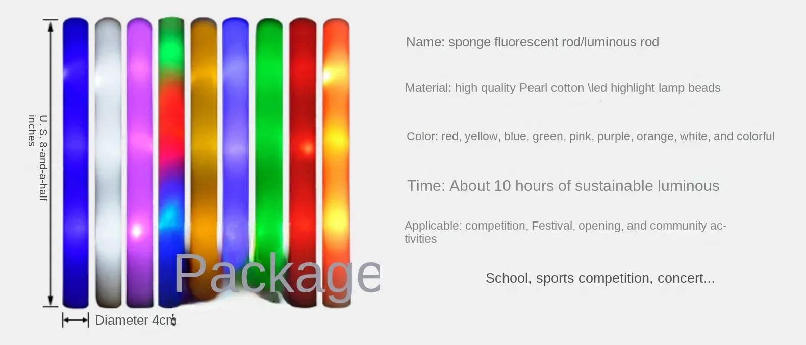 Bastão brilhante de espuma LED, bastão de espuma que brilha no escuro, suprimentos para festas, bastão luminoso colorido para casamentos, festas de formatura, reuniões