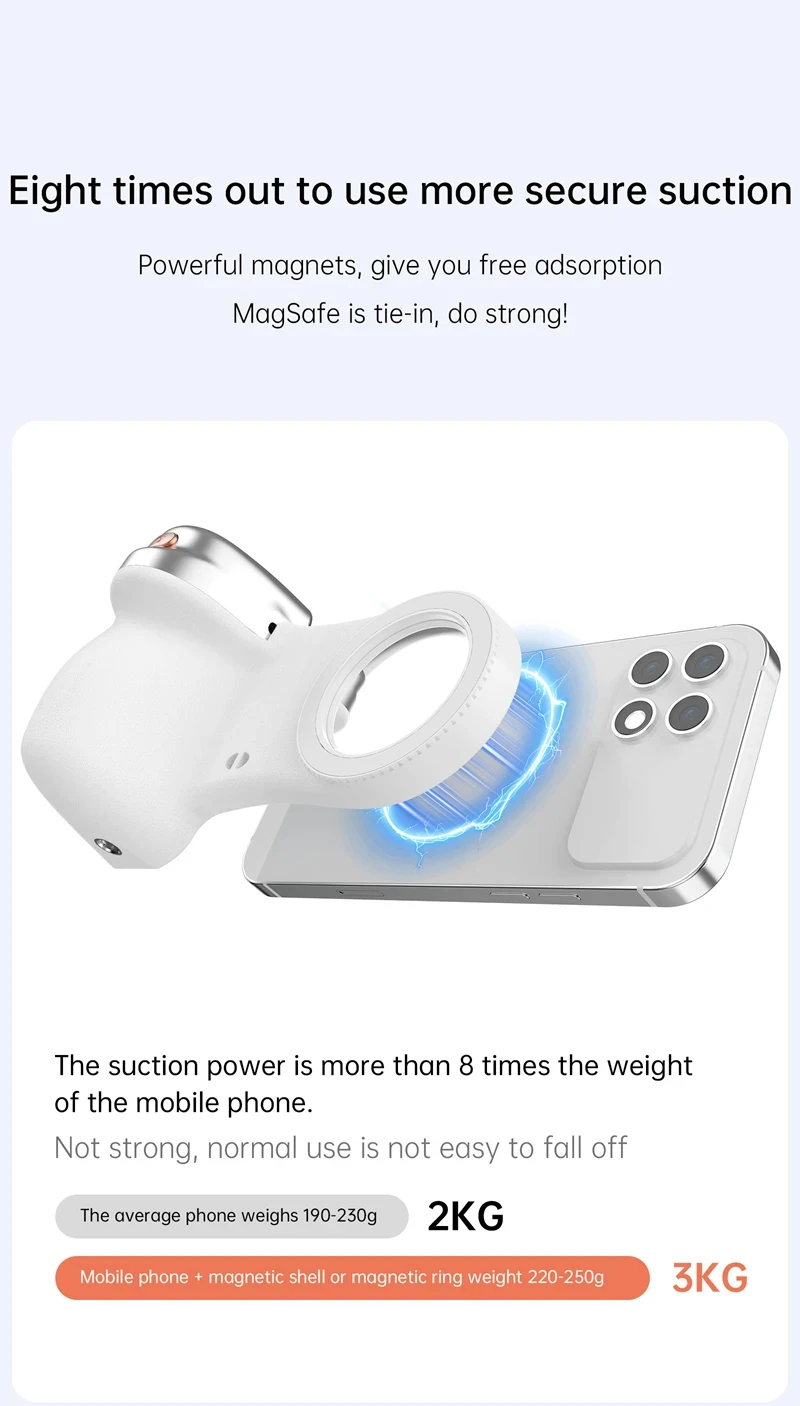✅ Força Magnética 8x Mais Forte – Fixa telefones (190-250g) com atração magnética de 2-3KG.