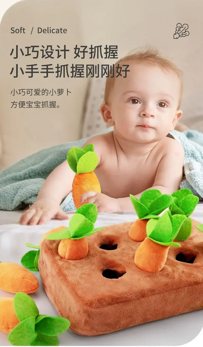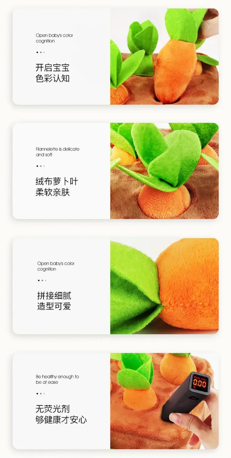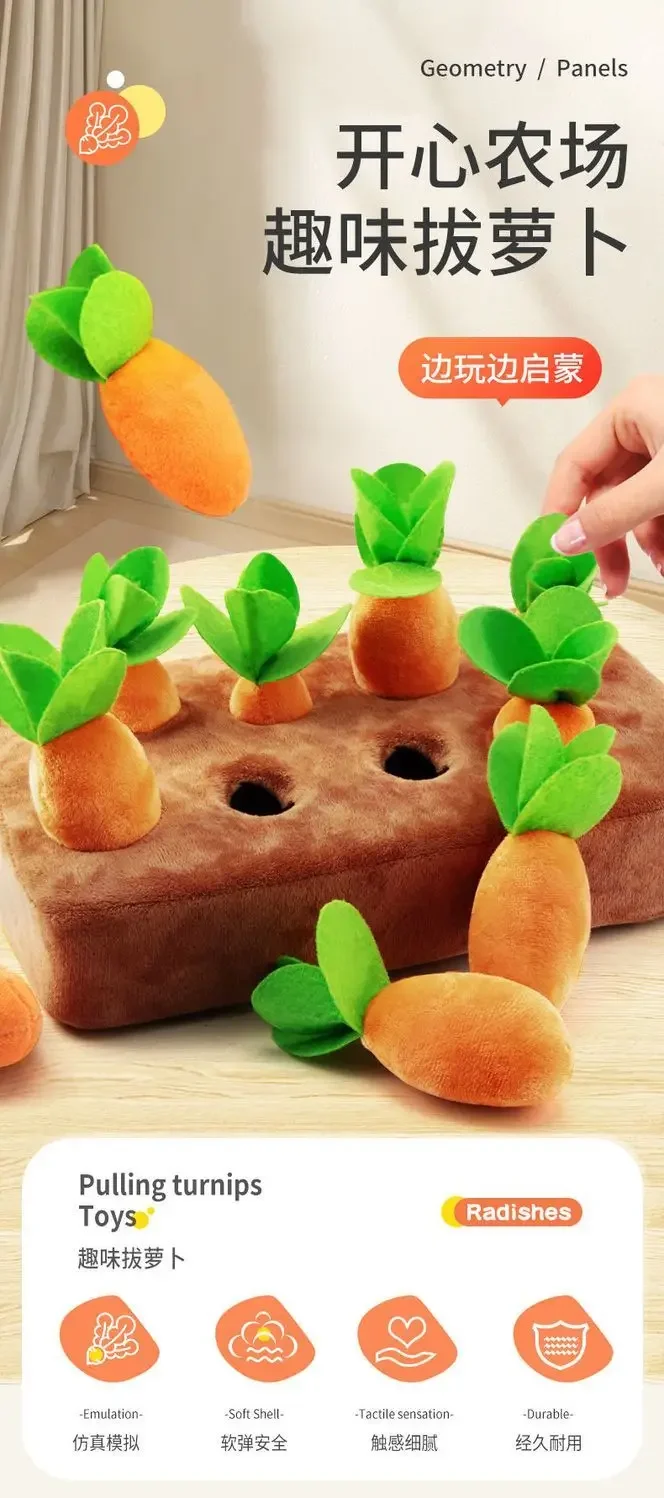 - > Bebê de pelúcia retirar cenoura interação brinquedos algodão montessori rabanete jogo reconhecendo brinquedos educativos para crianças 0-3y presente