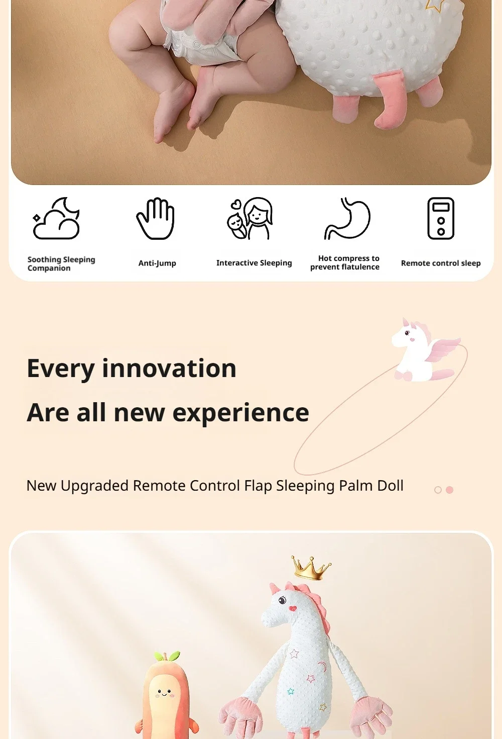 Boneca para dormir do bebê com palma calmante, controle remoto, travesseiro elétrico para bebê, brinquedo calmante para bater na palma