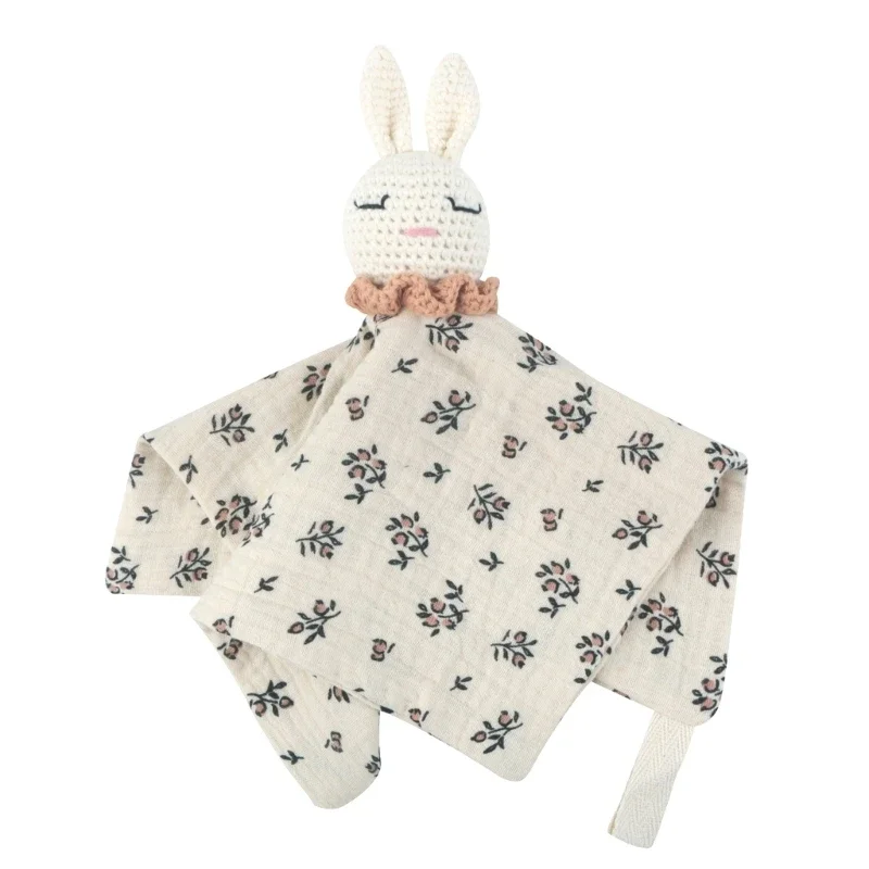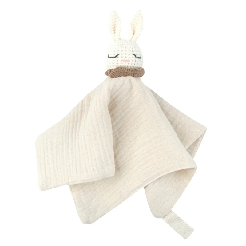 1x toalha reconfortante de bebê de crepe de algodão de coelho de crochê