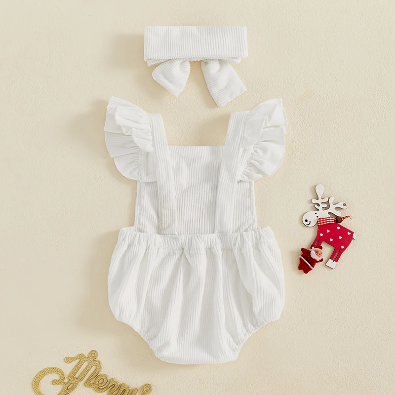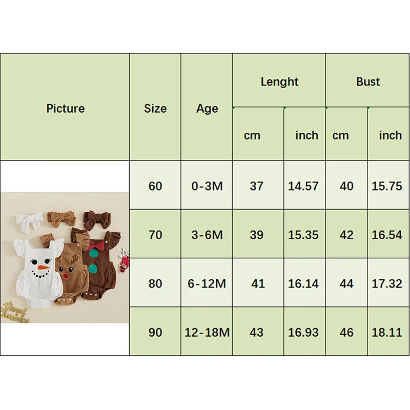 - > Bebê infantil menino menina macacão de natal adorável boneco de neve rena impressão mangas voadoras pescoço quadrado macacão com bandana