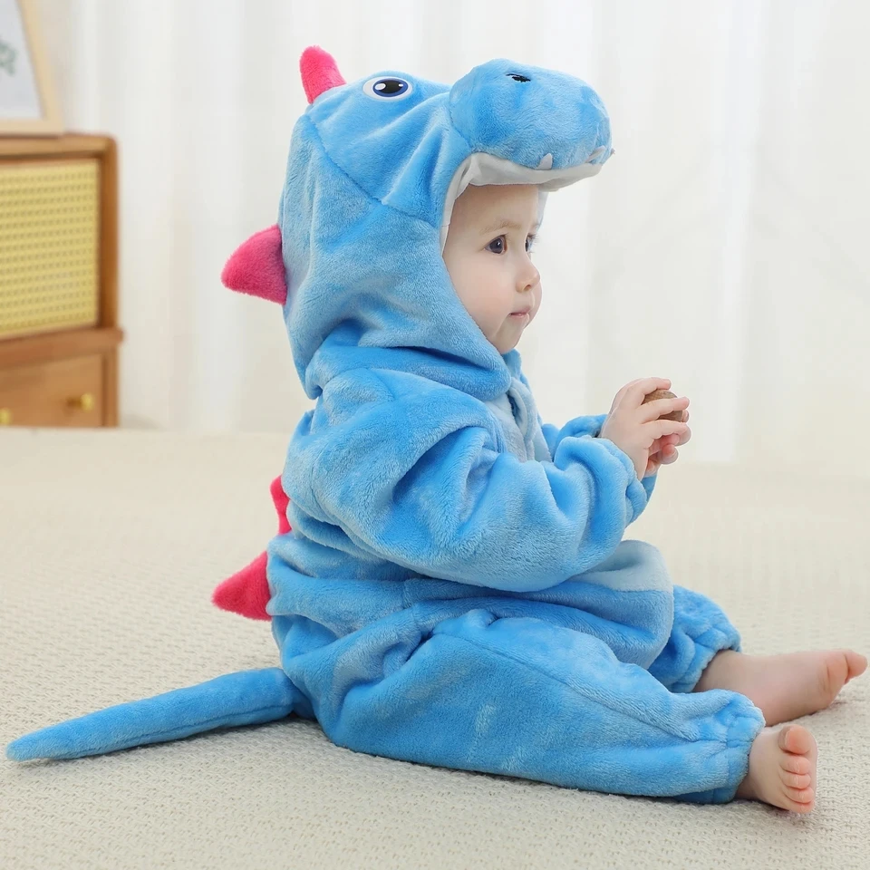 Bebê kigurumi dinossauro unicórnio animal cosplay traje inverno quente macacão para crianças meninos 1 a 2 3 4 anos roupas da menina do bebê