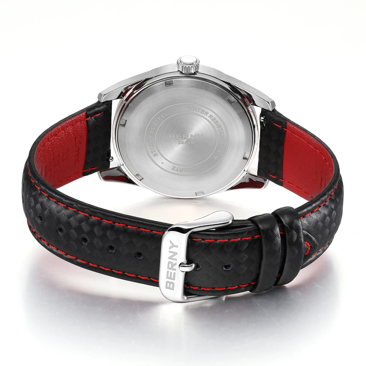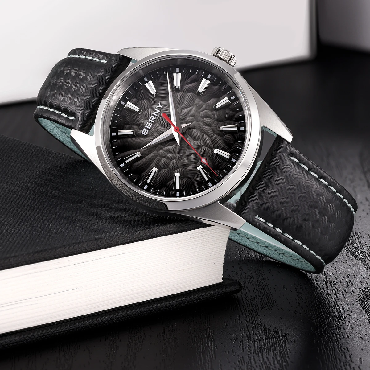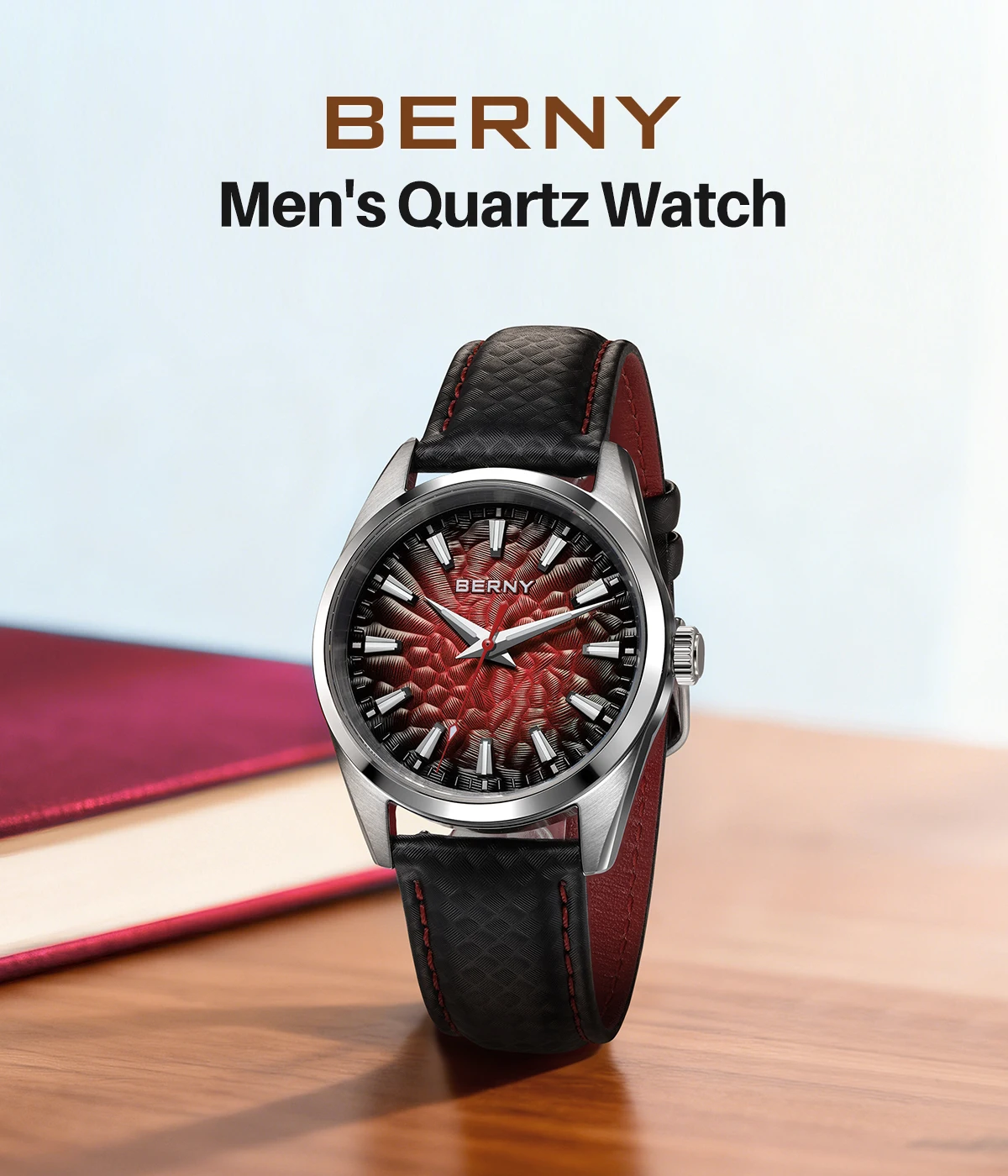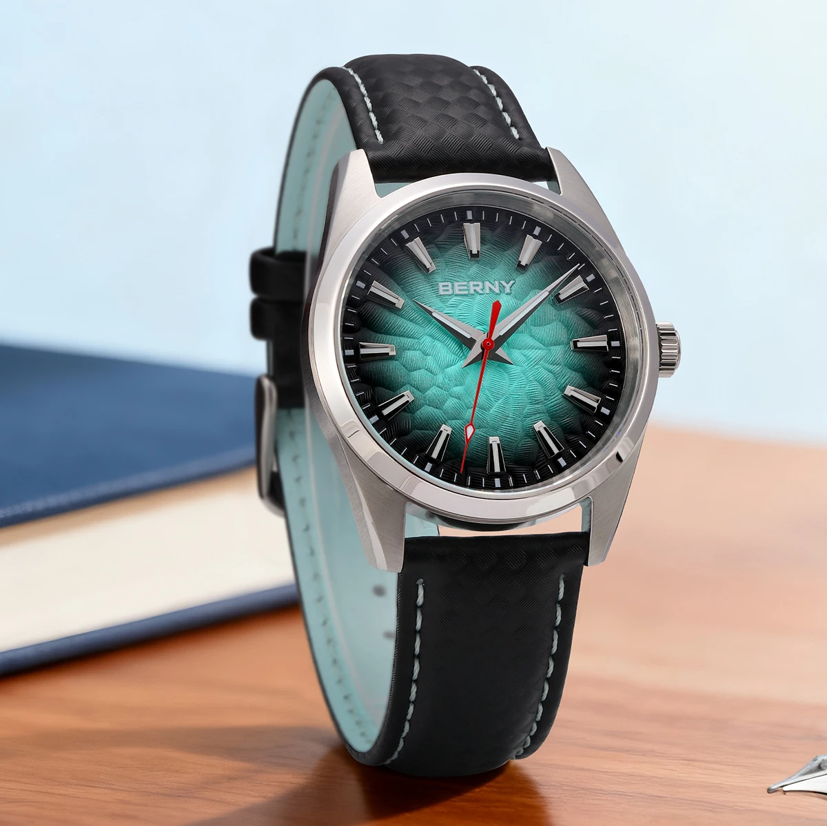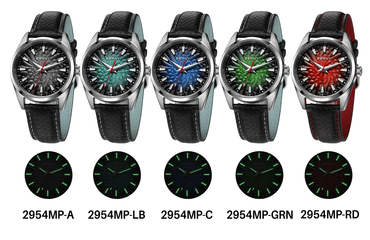 - > BERNY Relógios para Homens 10ATM Safira Luminosa Moda Quart Relógio Masculino Clássico Elegante Vestido Negócios Pulseira de Couro Relógio de Pulso