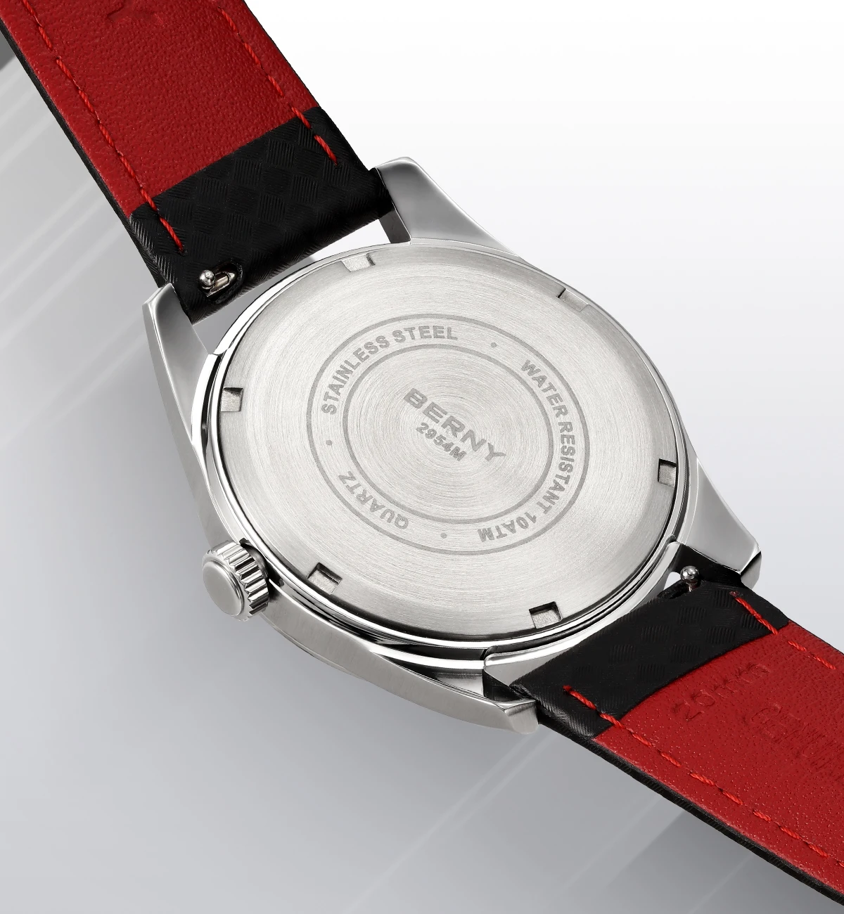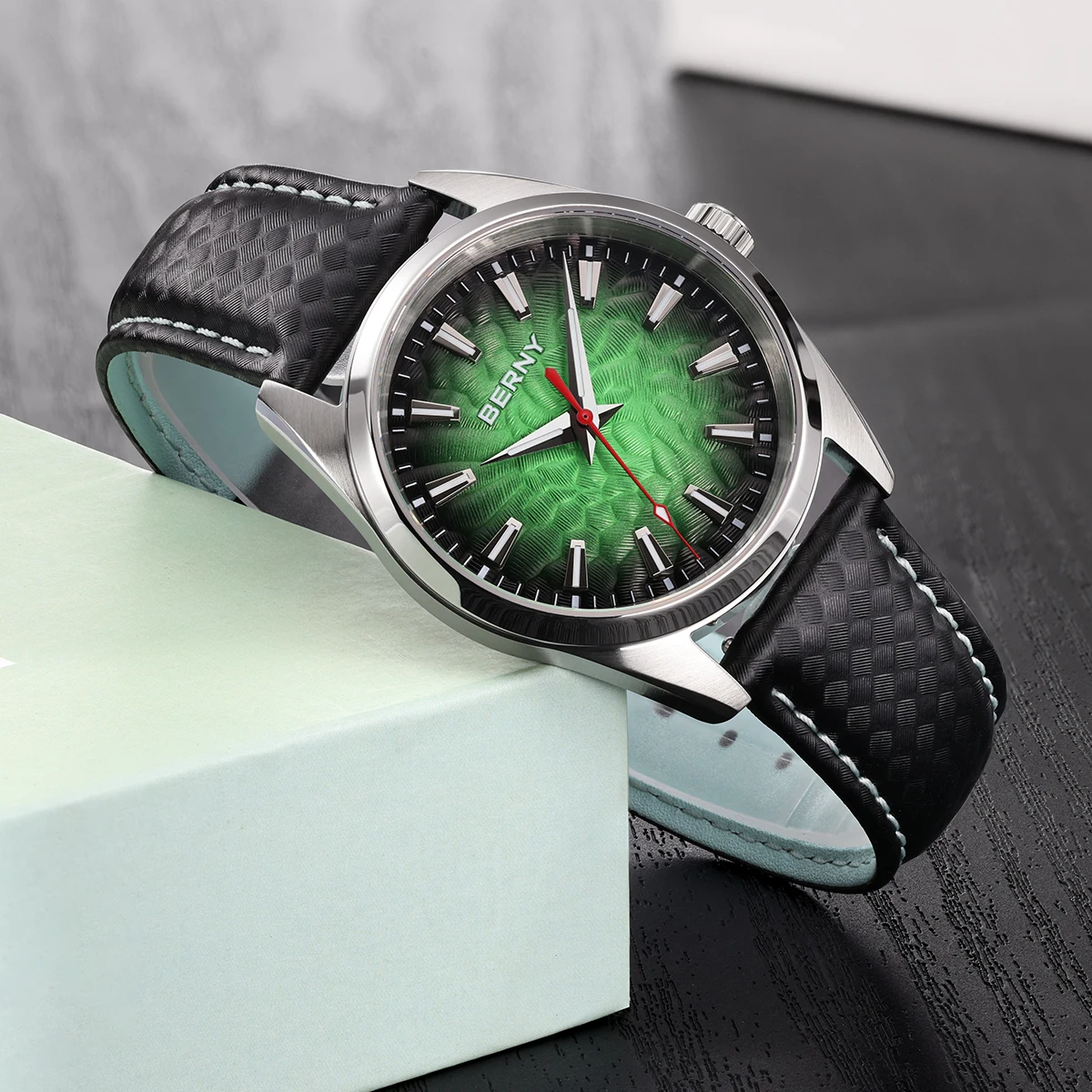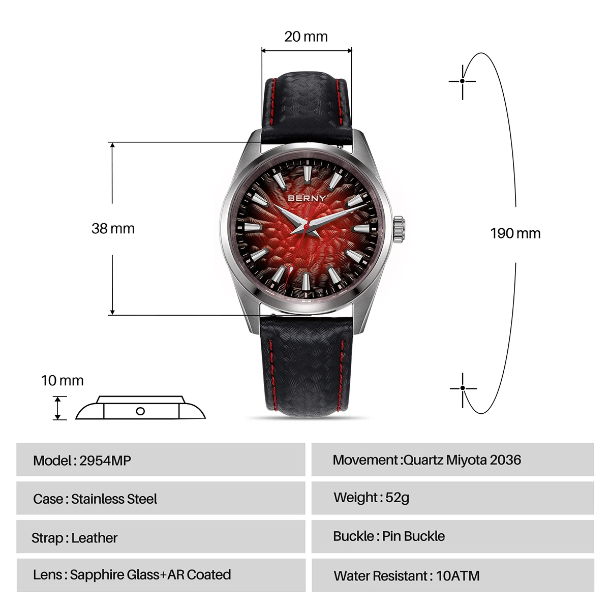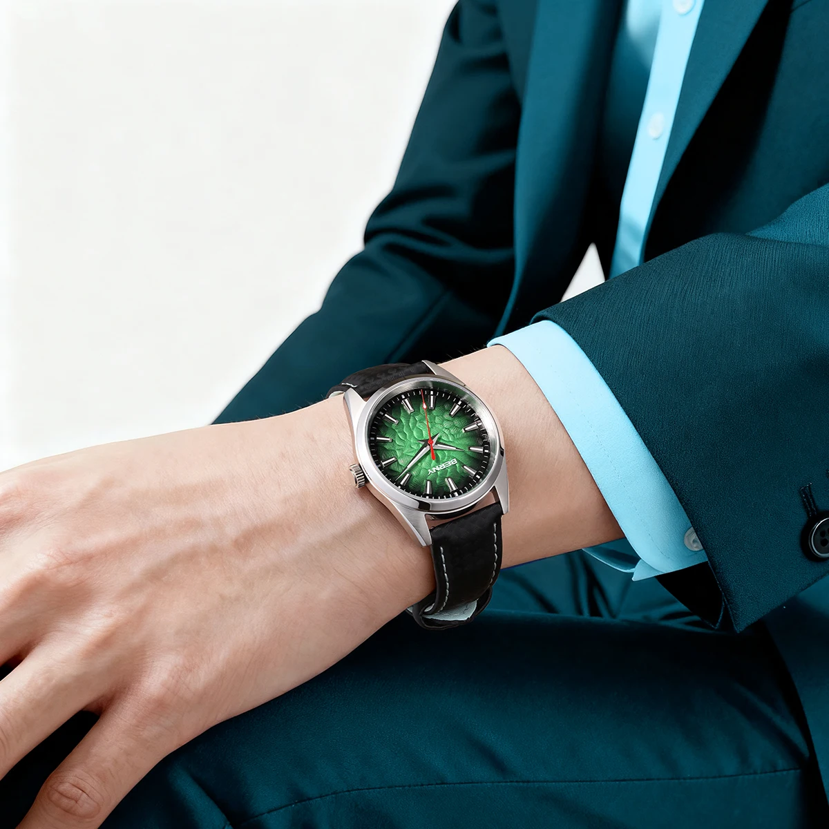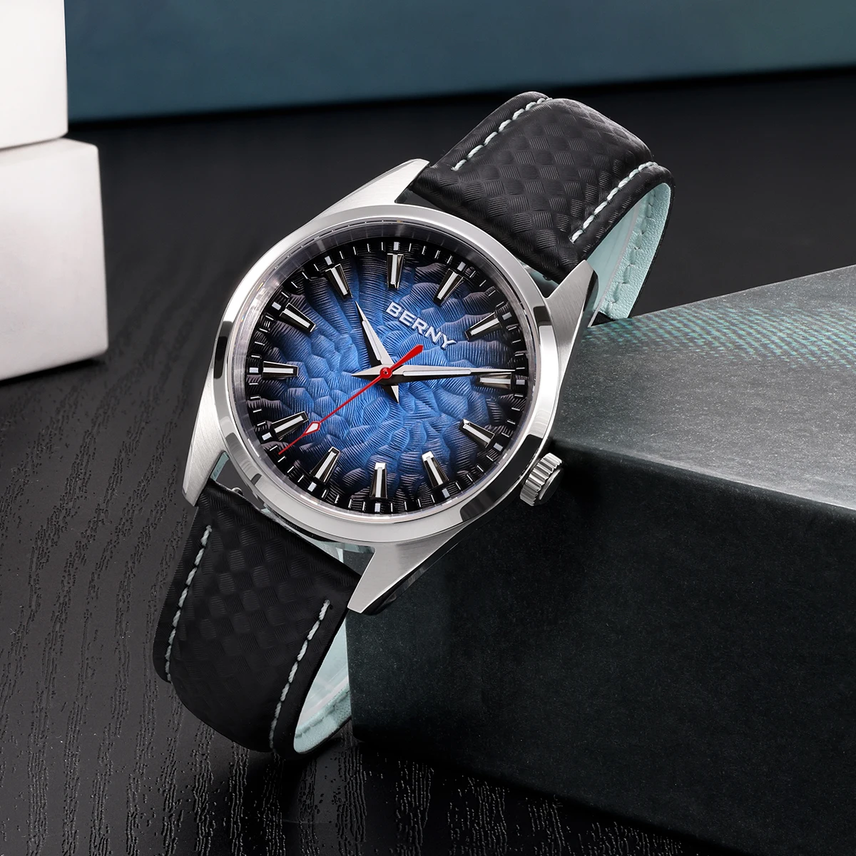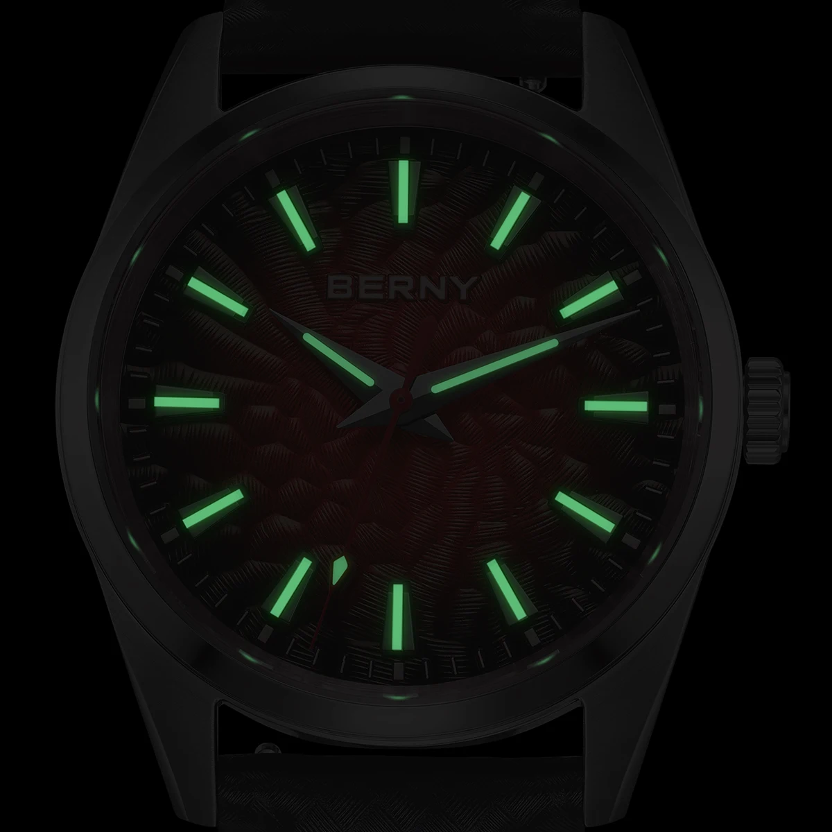 - > BERNY Relógios para Homens 10ATM Safira Luminosa Moda Quart Relógio Masculino Clássico Elegante Vestido Negócios Pulseira de Couro Relógio de Pulso