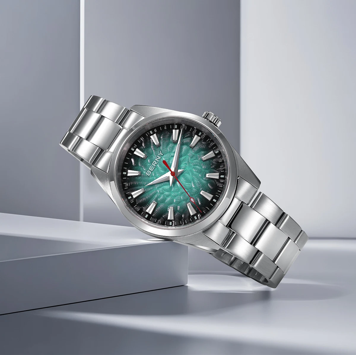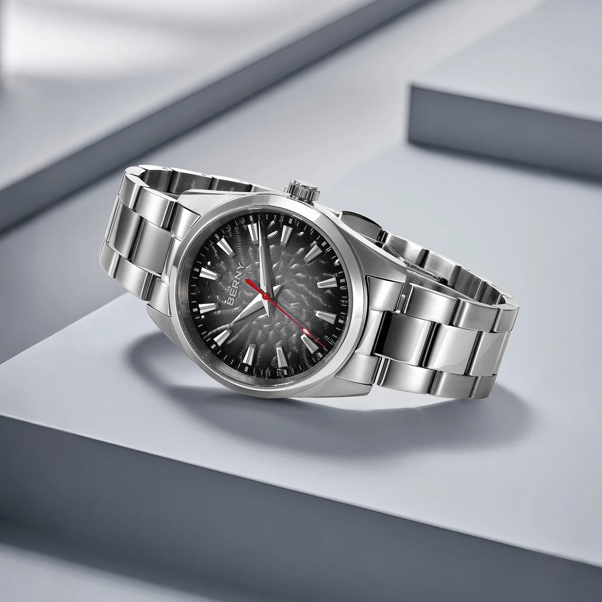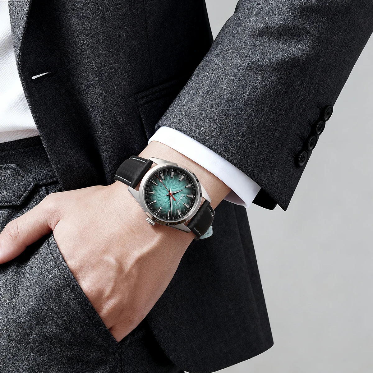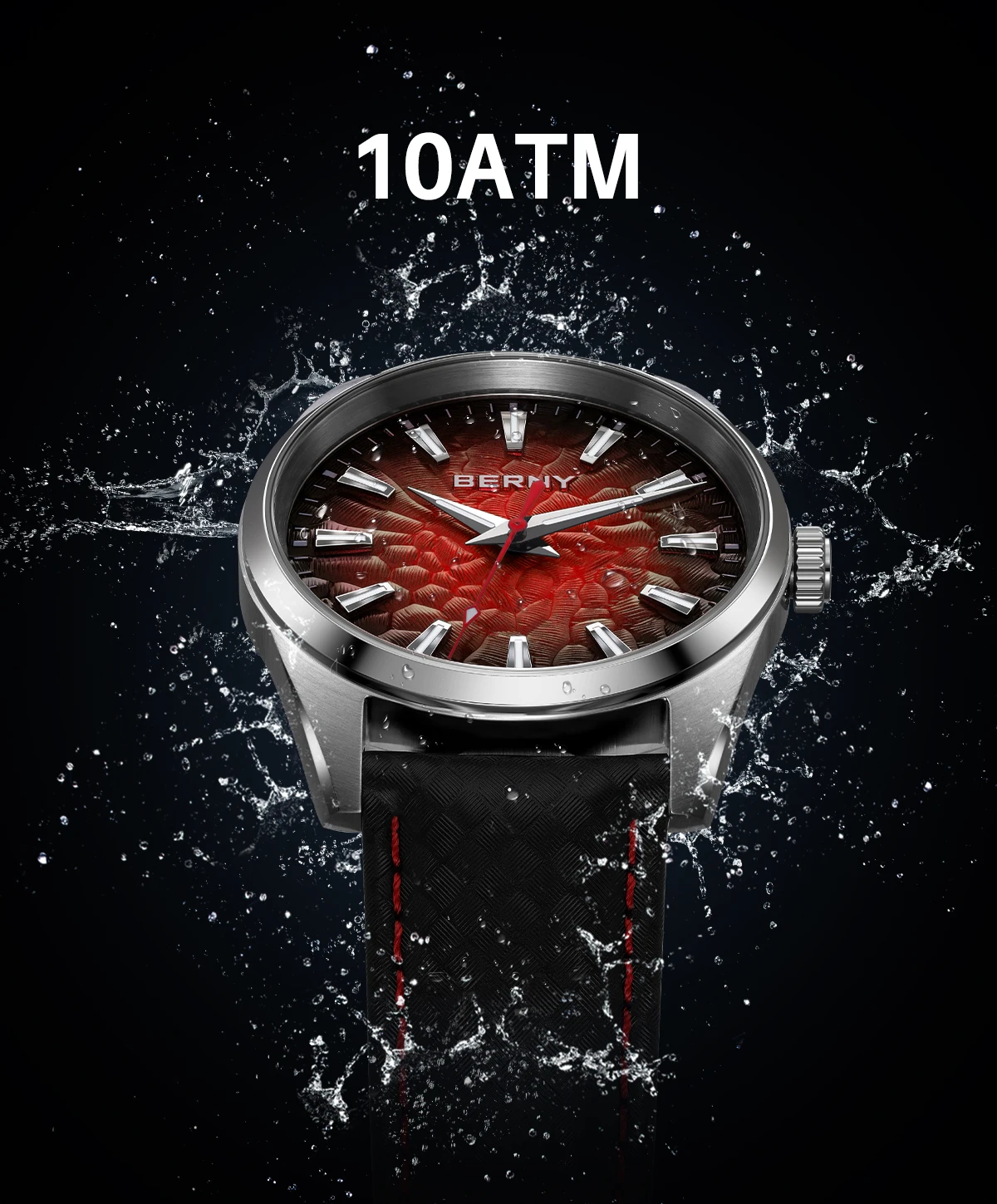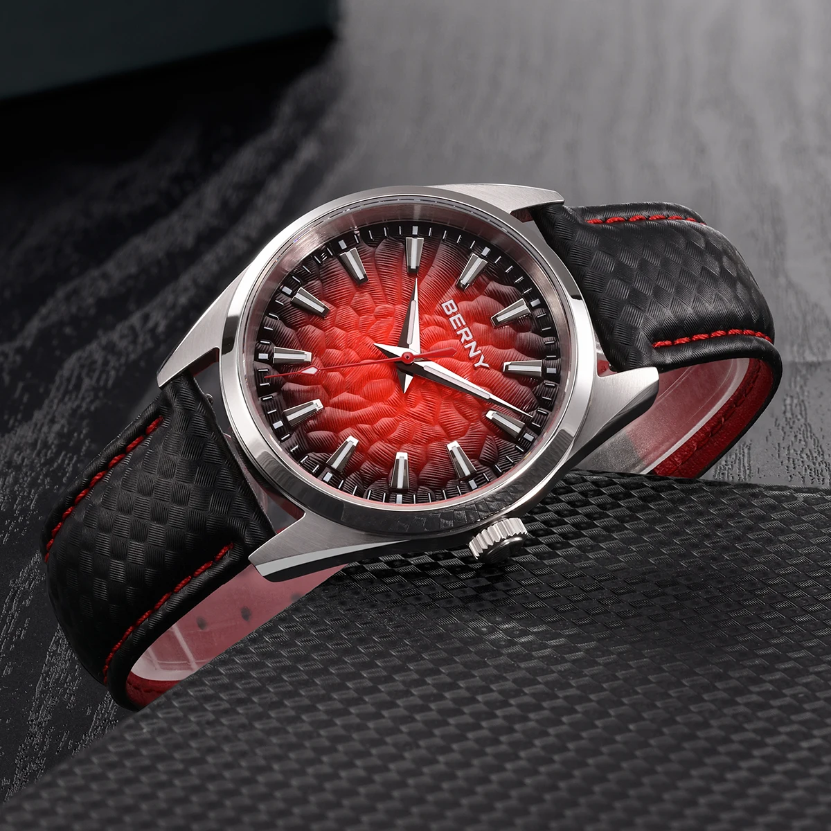 - > BERNY Relógios para Homens 10ATM Safira Luminosa Moda Quart Relógio Masculino Clássico Elegante Vestido Negócios Pulseira de Couro Relógio de Pulso