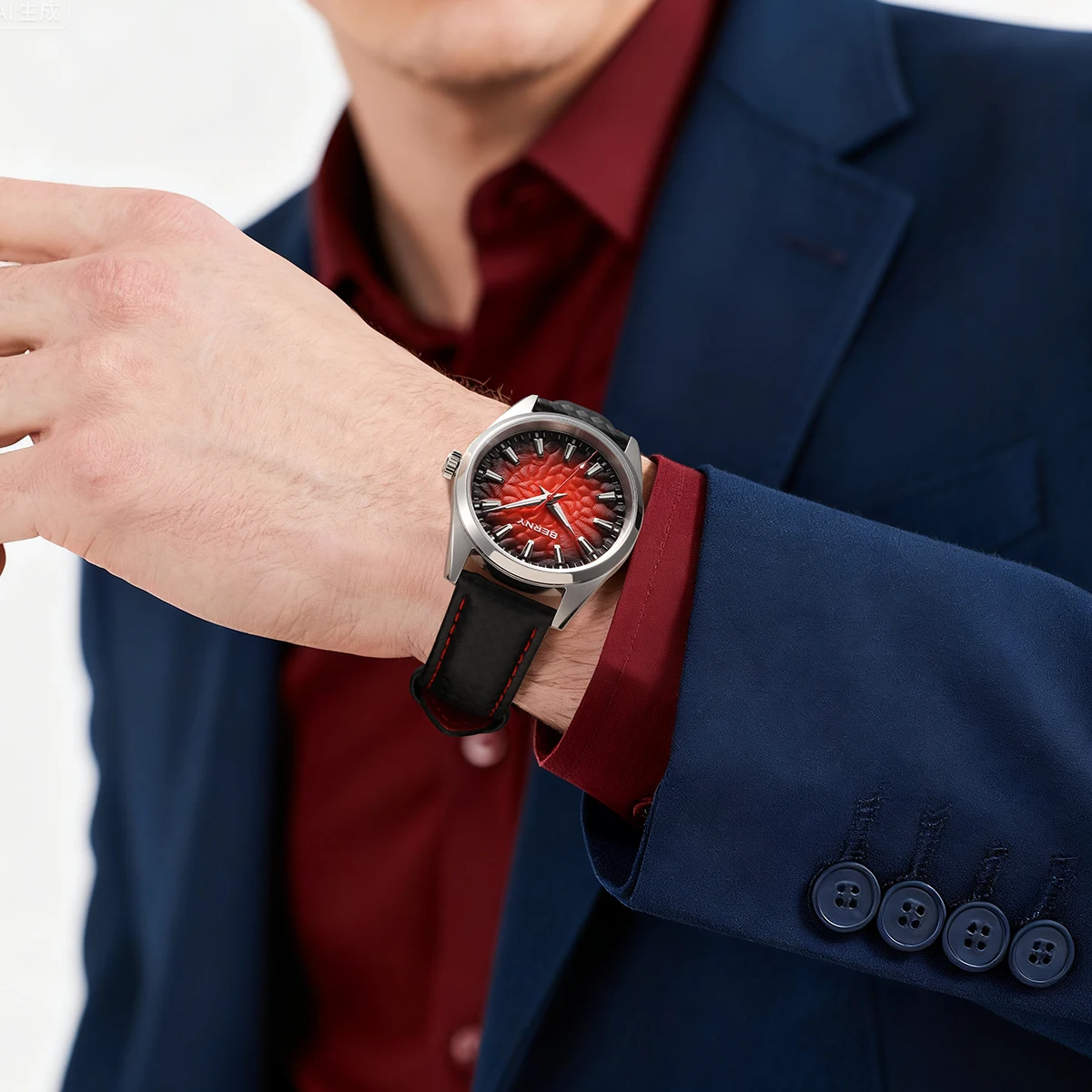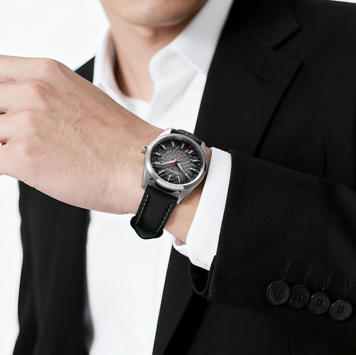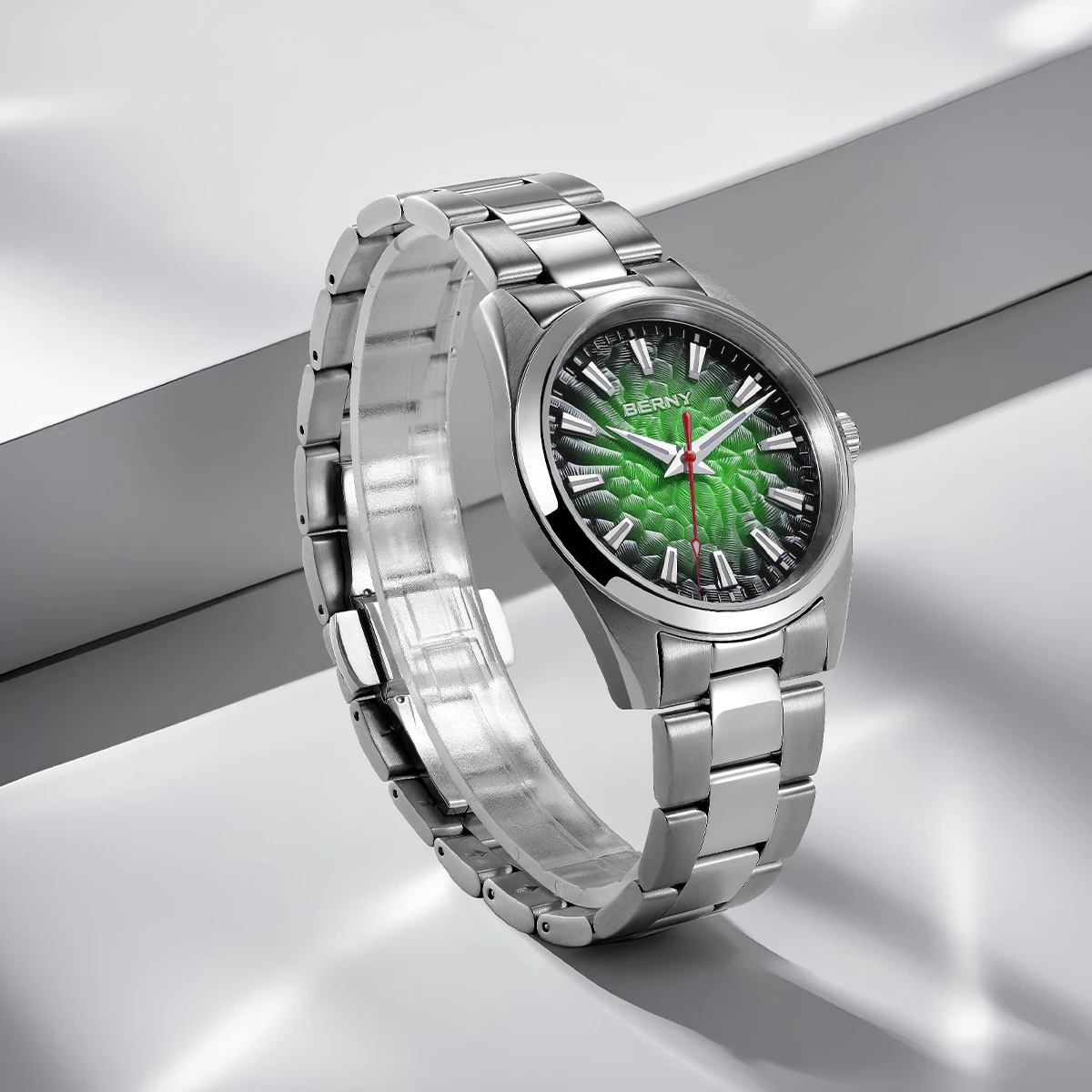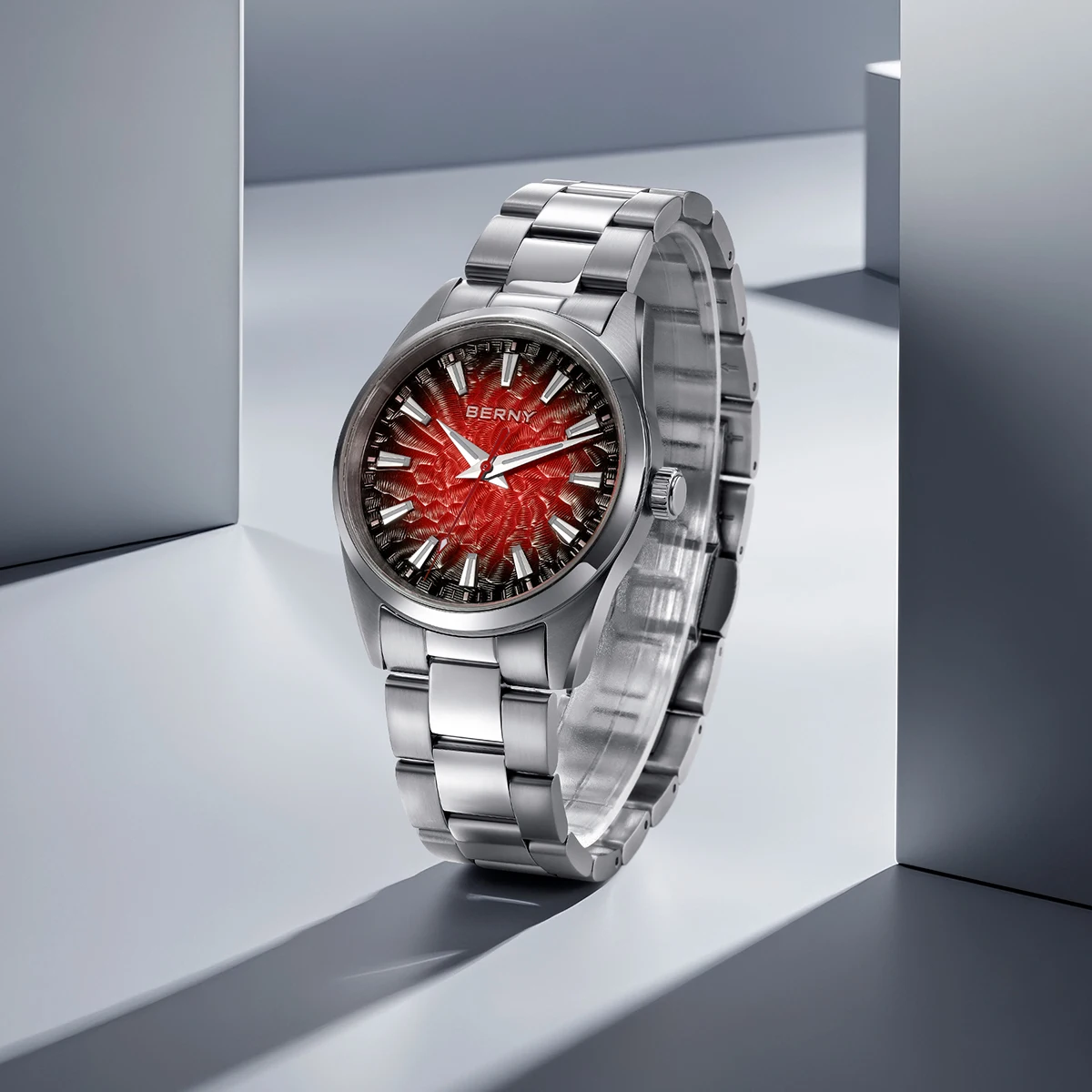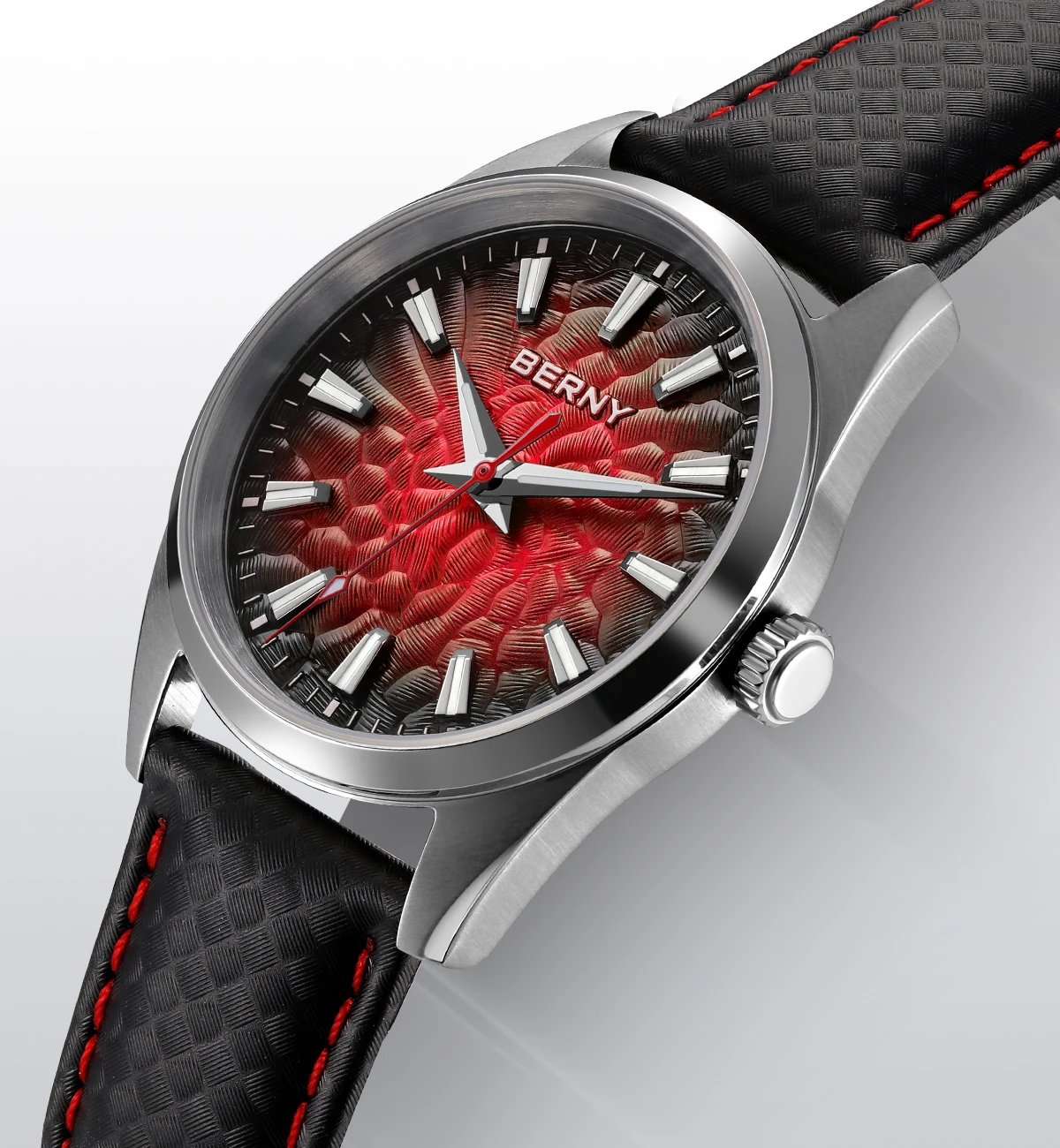 - > BERNY Relógios para Homens 10ATM Safira Luminosa Moda Quart Relógio Masculino Clássico Elegante Vestido Negócios Pulseira de Couro Relógio de Pulso