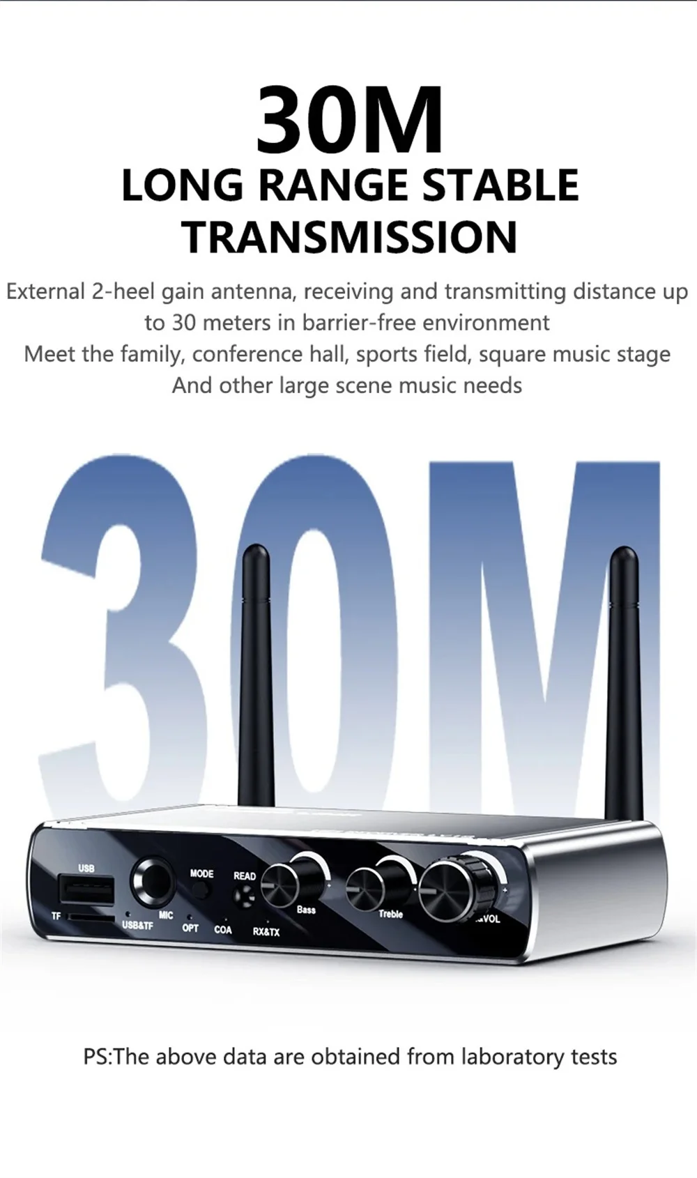 Suporte para reprodução USB/TF: WMA/WAV/FLAC/APE/MP3.