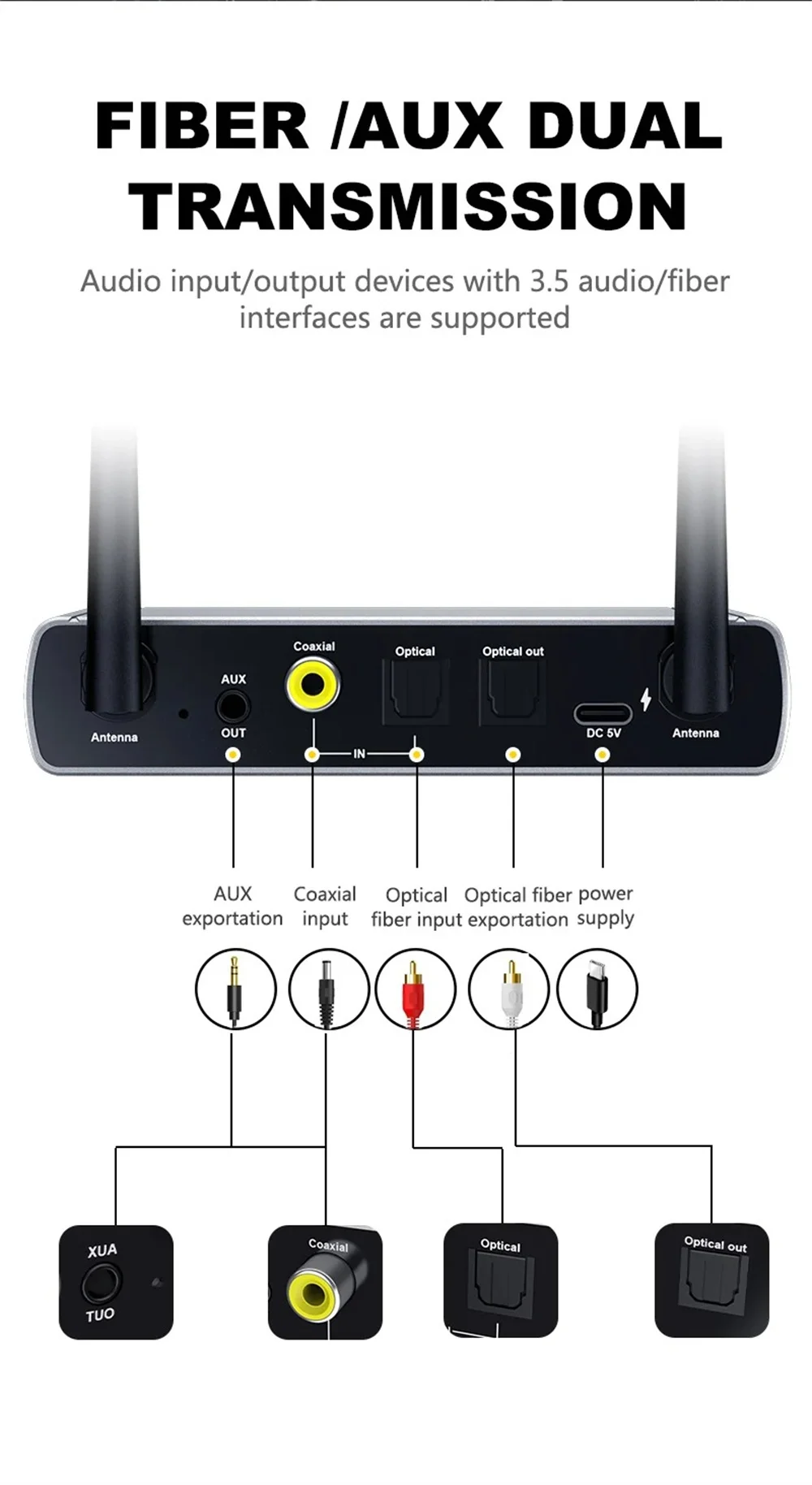 - > Bluetooth 5.4 transmissor receptor aux 3.5mm 6.5mm fibra óptica coaxial sem fio música adaptador de áudio controle remoto para tv pc