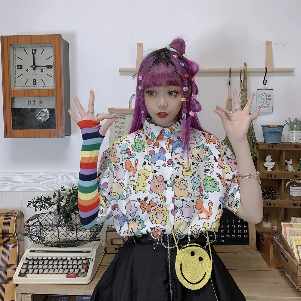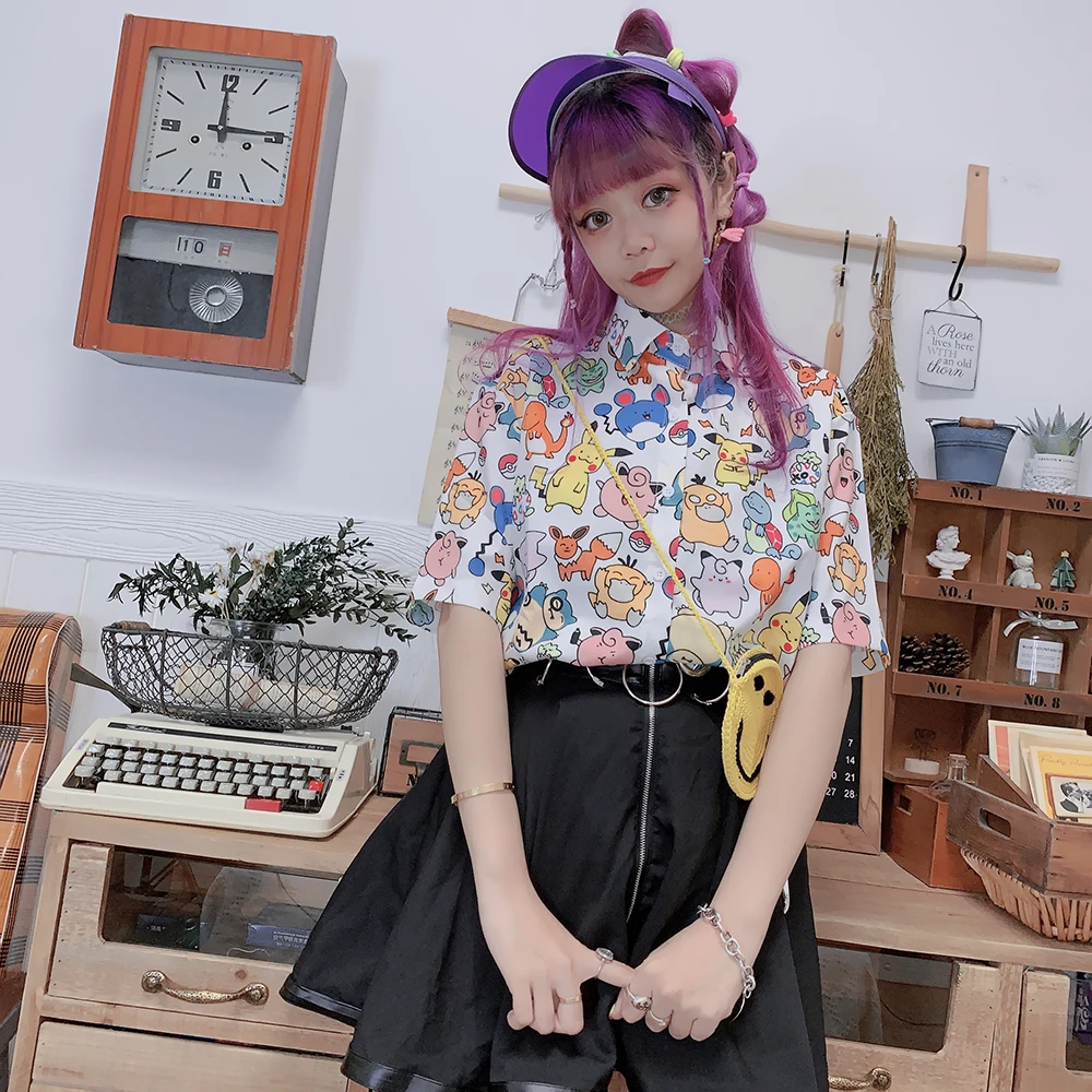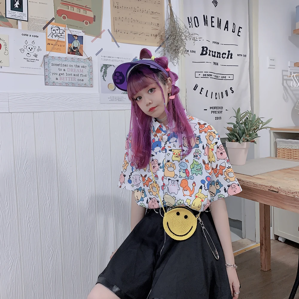 Blusa de Chiffon Kawaii com estampa animal feminina, Tops femininos, Harajuku, retrô, desenhos animados, Hip Hop, fofo, verão, Y2K, Novo, 2022