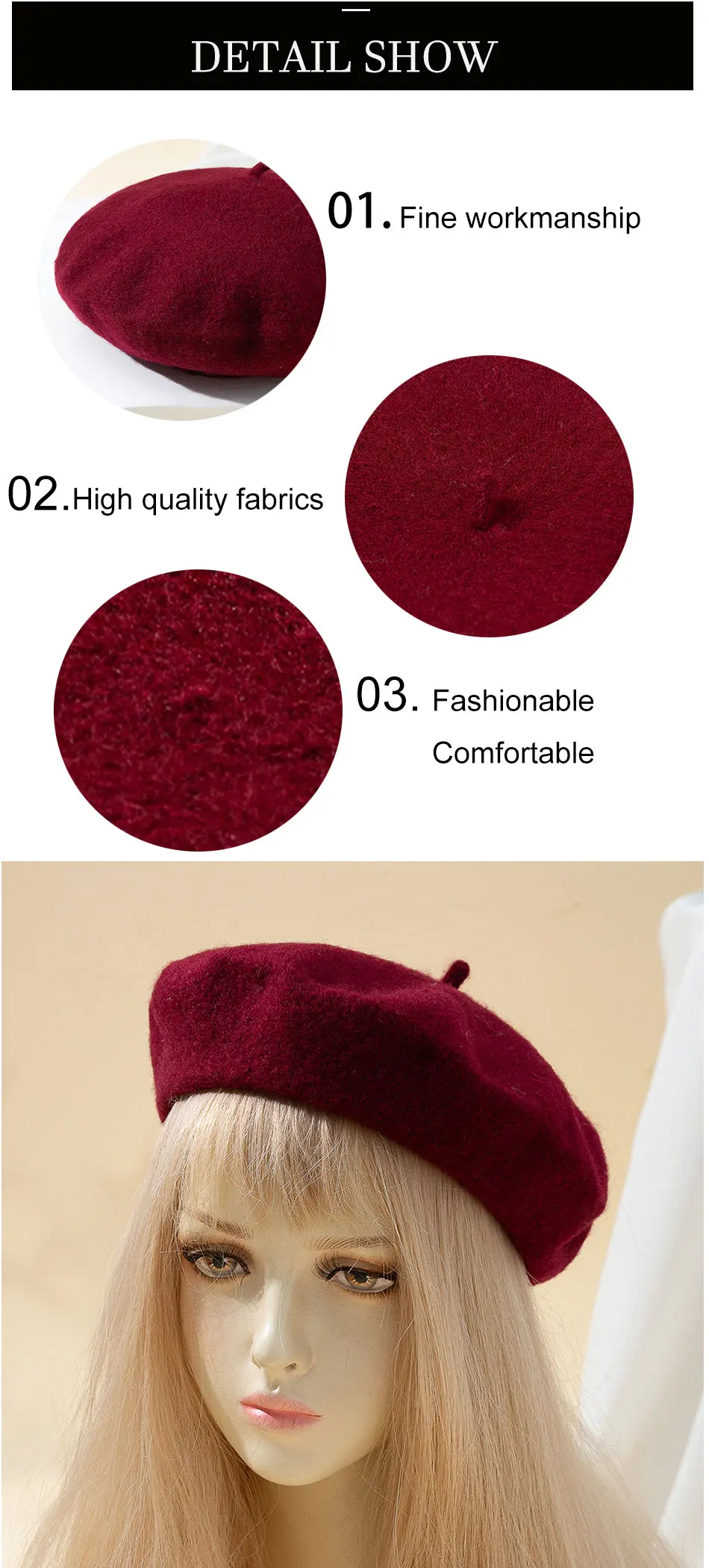• Artístico :O topo redondo desta boina adiciona um toque artístico ao seu visual, fazendo você se destacar da multidão.