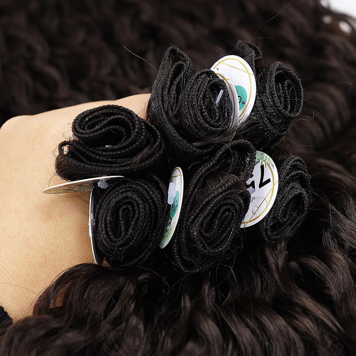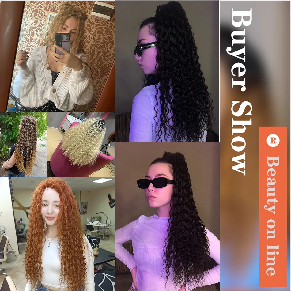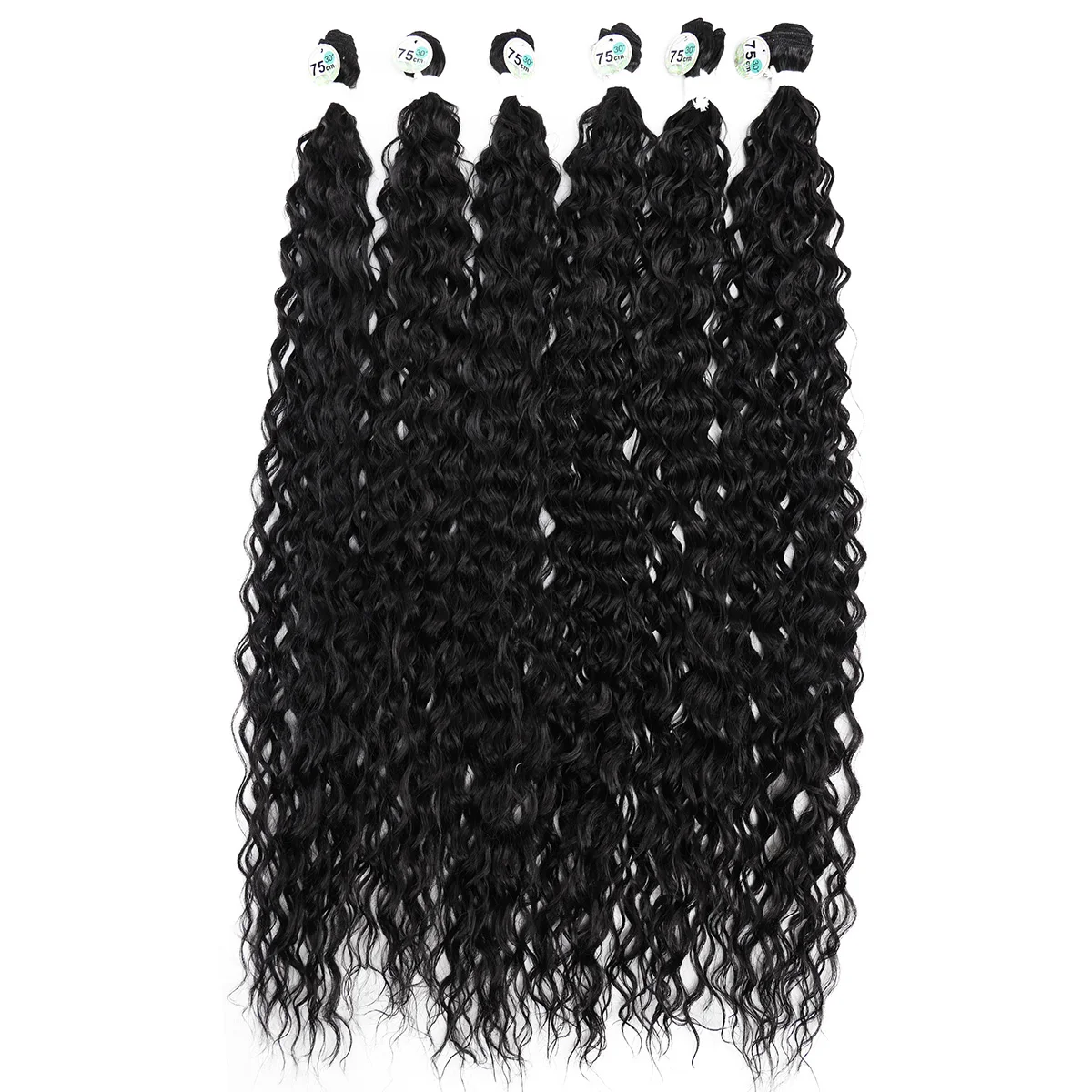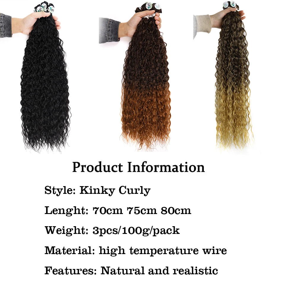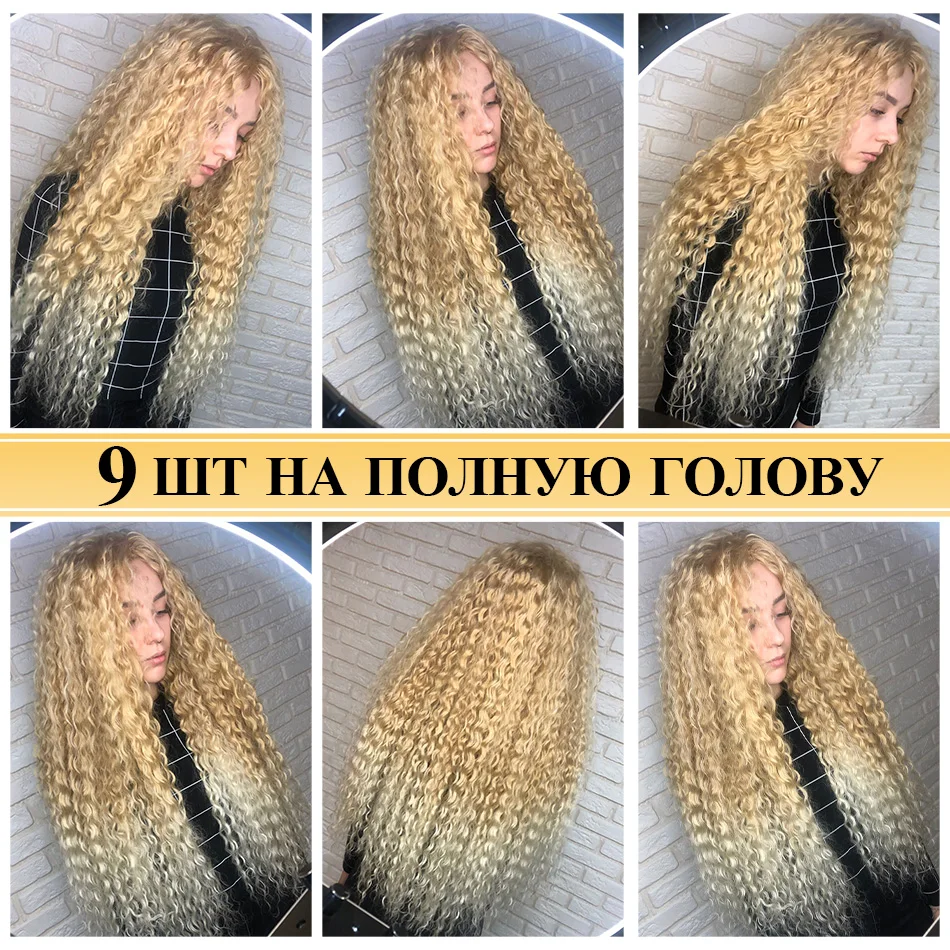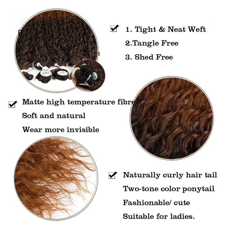 - > Bol longo encaracolado feixes de cabelo sintético onda de água extensão do cabelo ombre loira cabelo falso para mulher fibra resistente ao calor