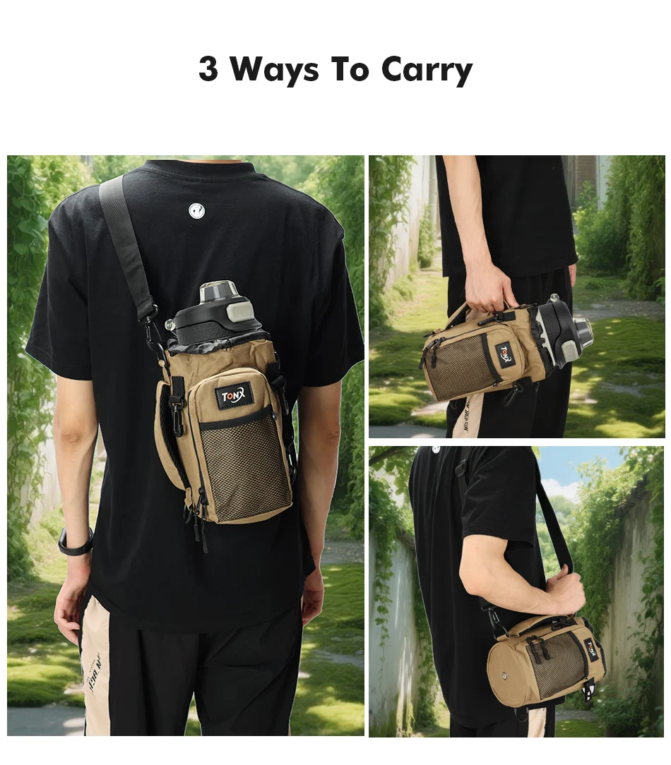 - > Bolsa de garrafa de água isolada multifuncional com ombro crossbody portátil ideal para caminhadas, ciclismo, acampamento, pesca