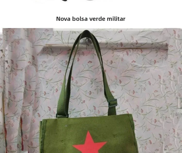 - > Bolsa de Lona Estilo Exército Vermelho para Presente de º de Julho, Bolsa Transversal Verde Estilo Lei Feng, Bolsa Casual de...