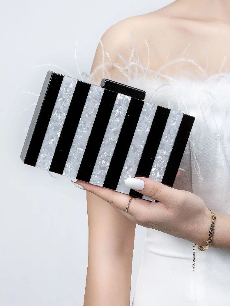 - > Bolsa de noite de casamento listras ombro novo crossbody embreagem moda acrílico retalhos sacos de luxo mulher marcas famosas bolsas
