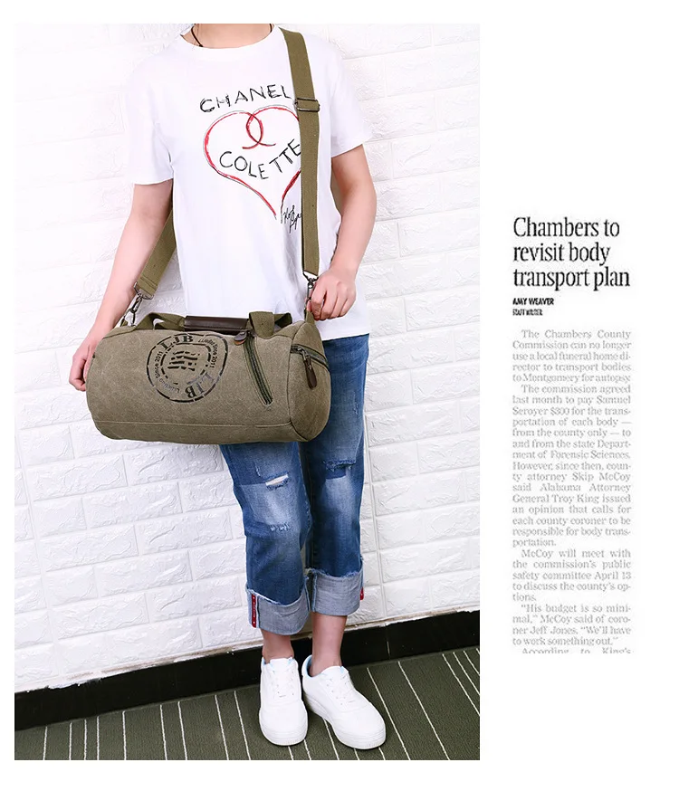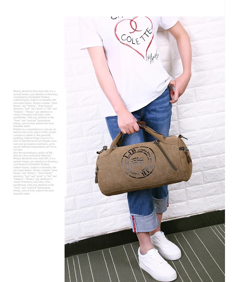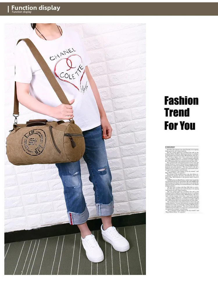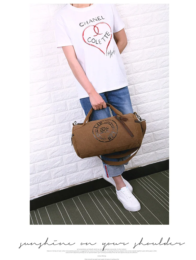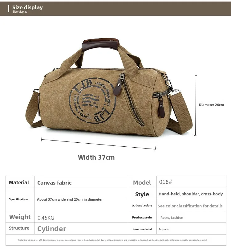 - > Bolsa de Ombro Unissex em Lona para Viagem e Roupas de Fitness, Bolsa Cilíndrica com Alça Única, Leve e Respirável