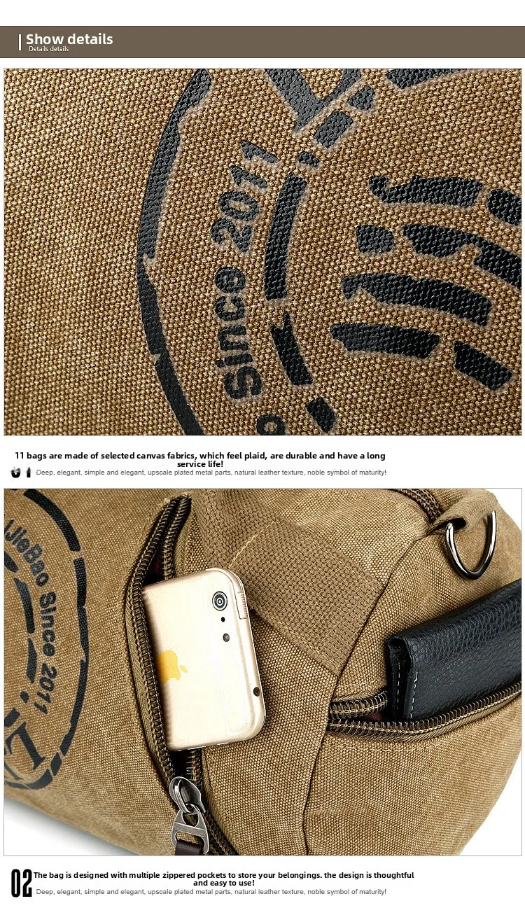 Fabricada em lona durável, esta bolsa não é apenas elegante, mas também respirável, garantindo conforto mesmo durante uso prolongado.