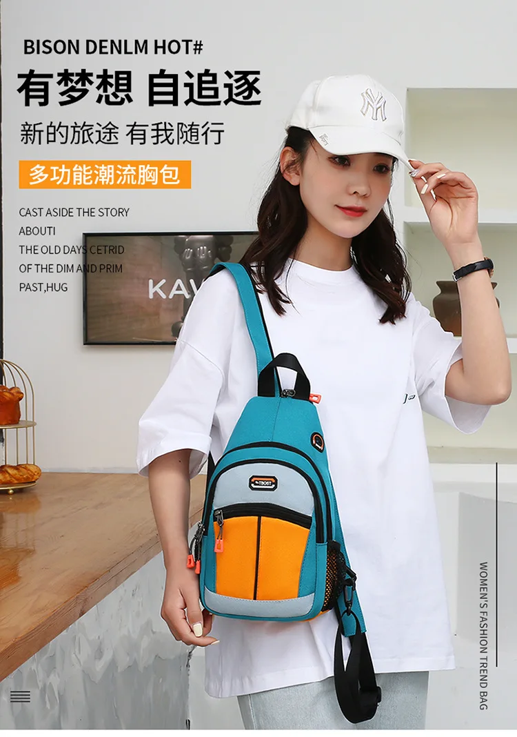Bolsa de peito feminina nova moda oxford pano à prova dwaterproof água saco de peito multifuncional mini mochila feminina esportes crossbody sacos