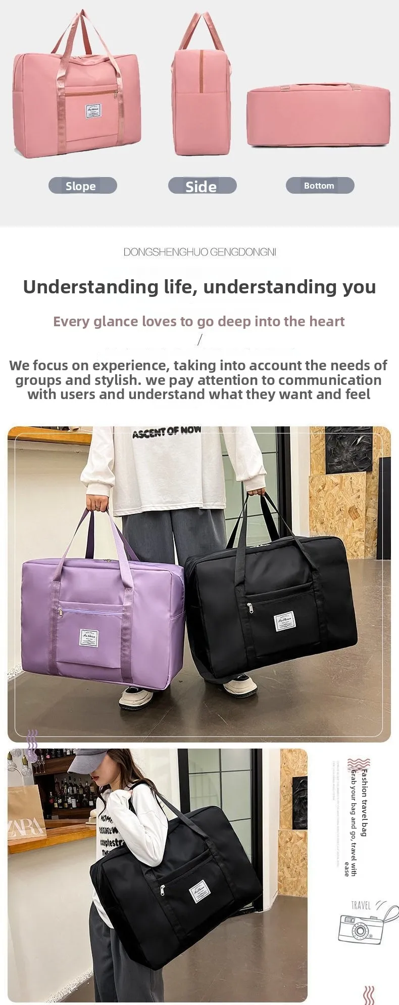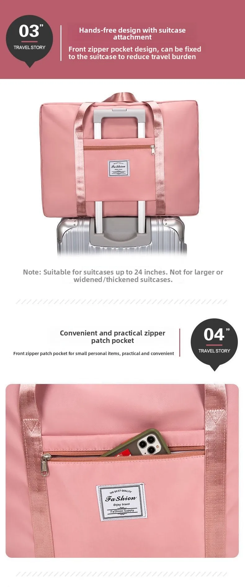 Além de ser usado como saco de viagem, também pode ser usado como saco de academia, saco de parto ou saco de armazenamento.