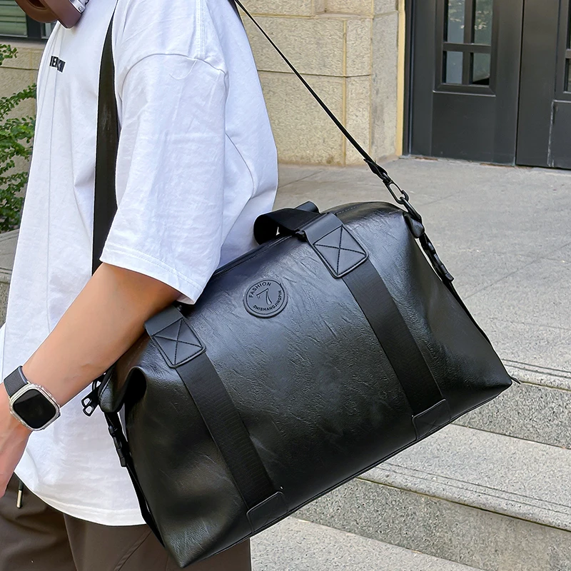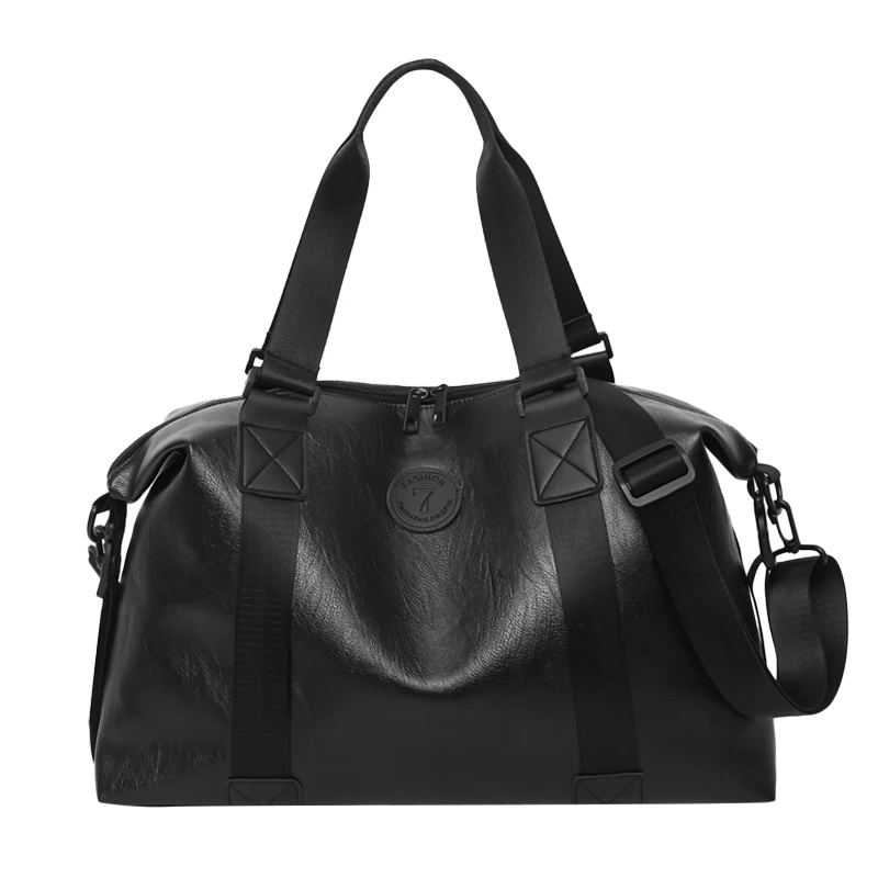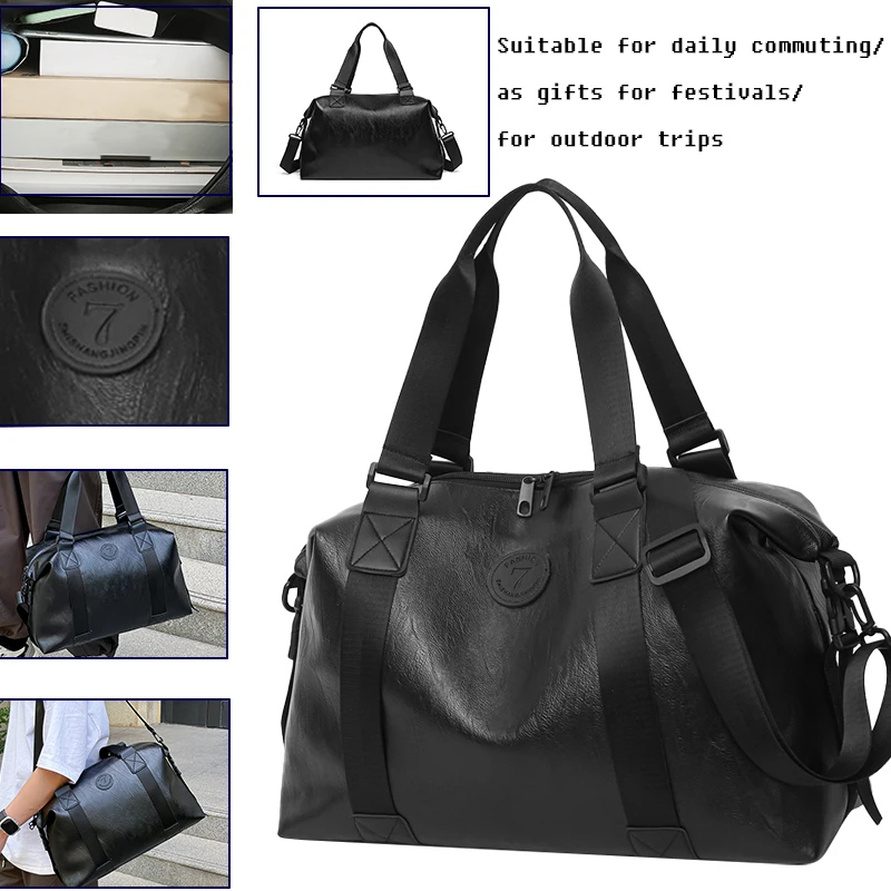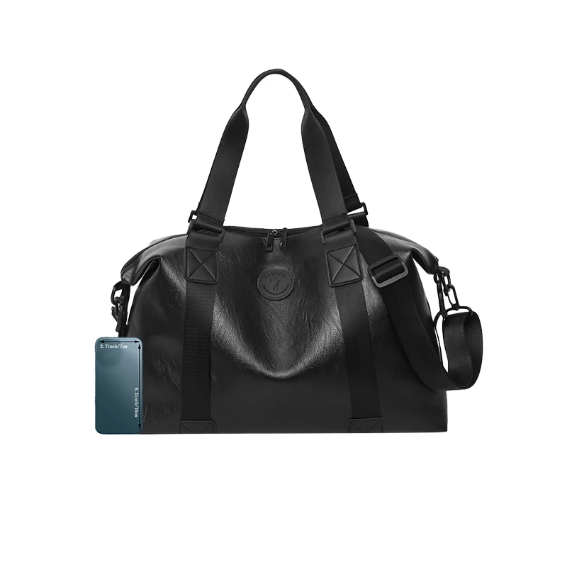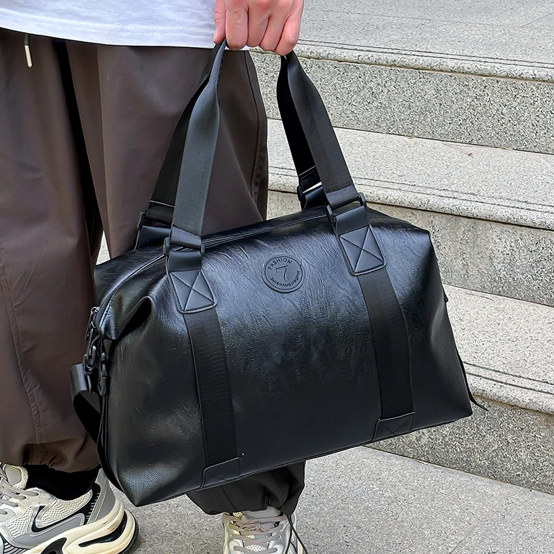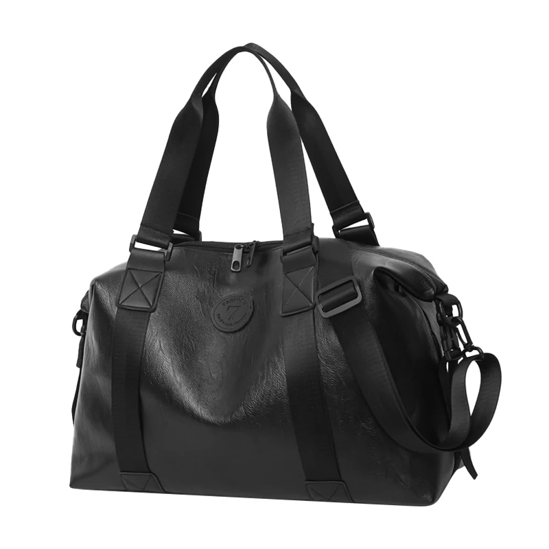 Bolsa duffle de couro sintético preta robusta para viagens e academia, elegante, durável, multifuncional, leve, funcional, bolsa de fim de semana