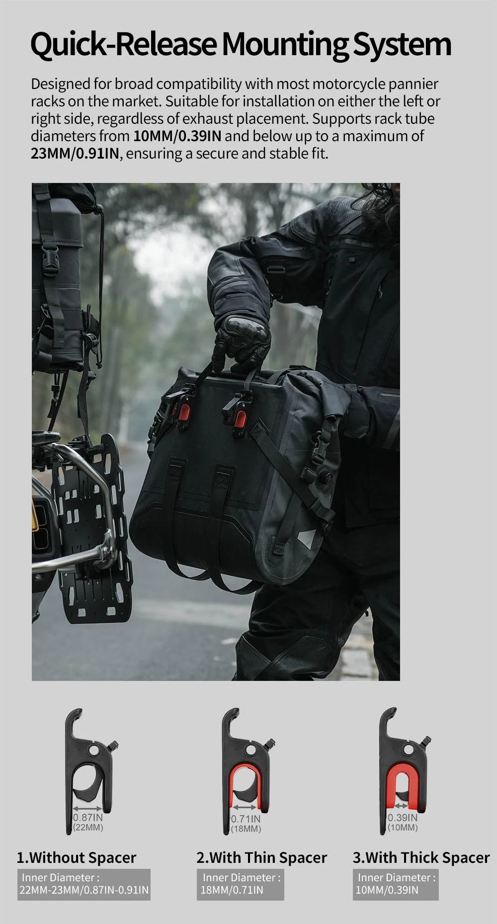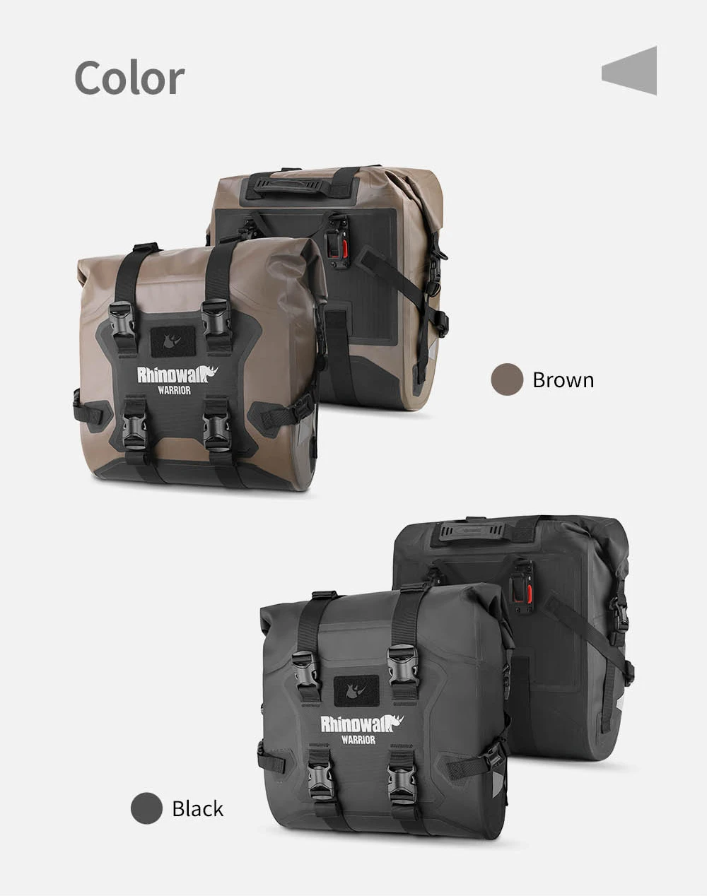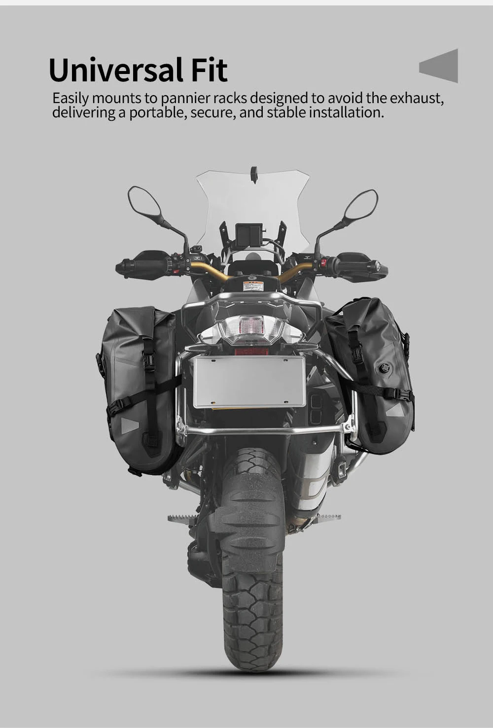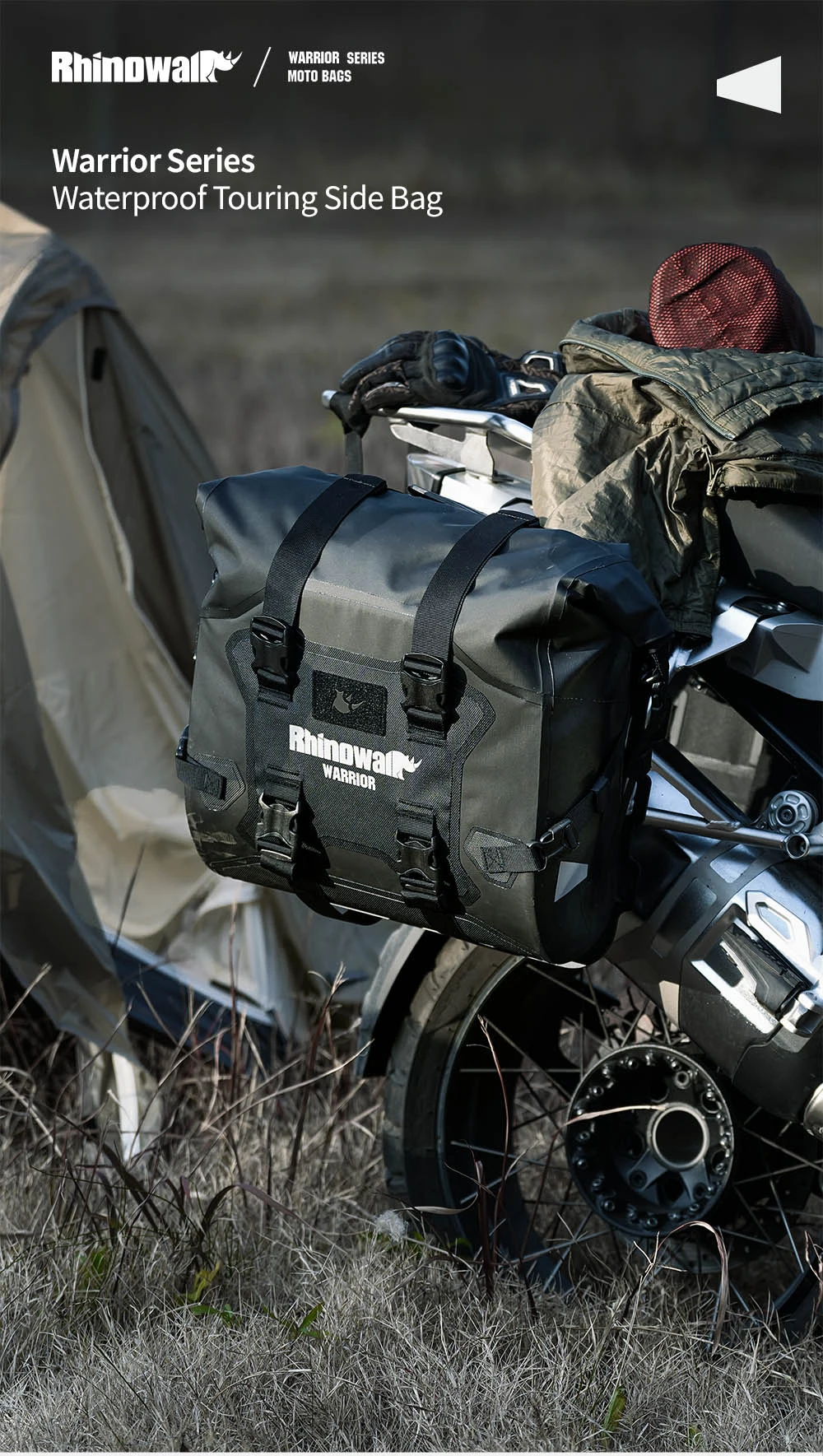- > Bolsa Lateral para Motocicleta Rhinowalk com Liberação Rápida 24L Impermeável para Armazenamento de Bagagem com Placa de Suporte Interna