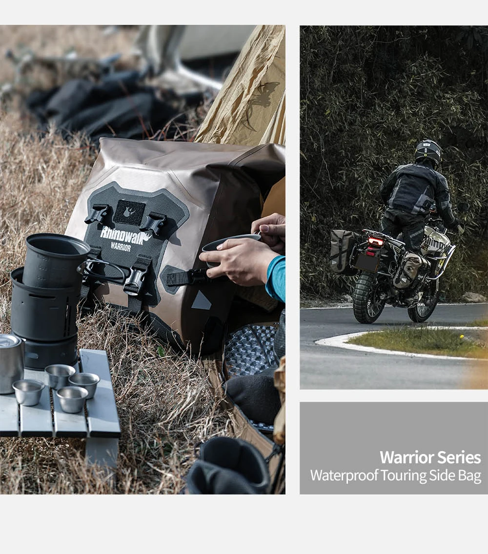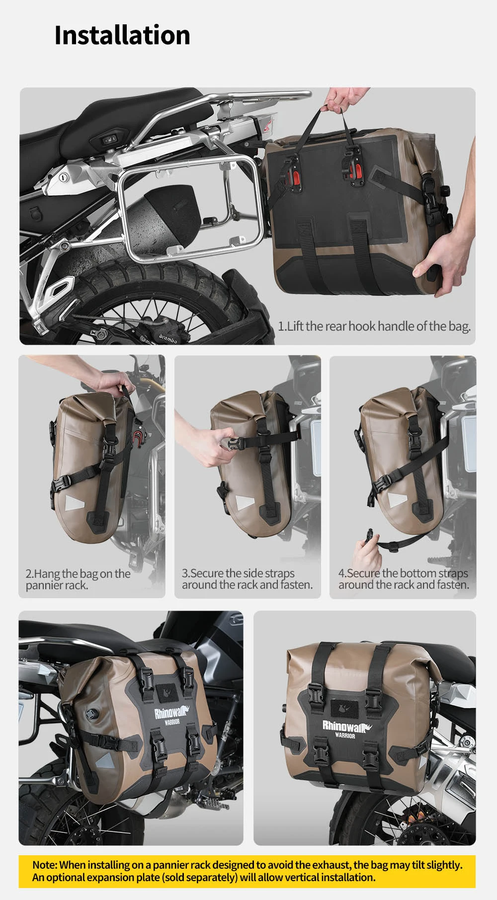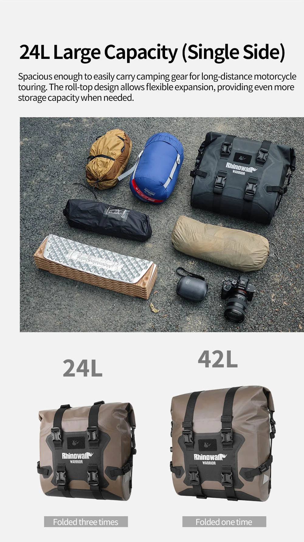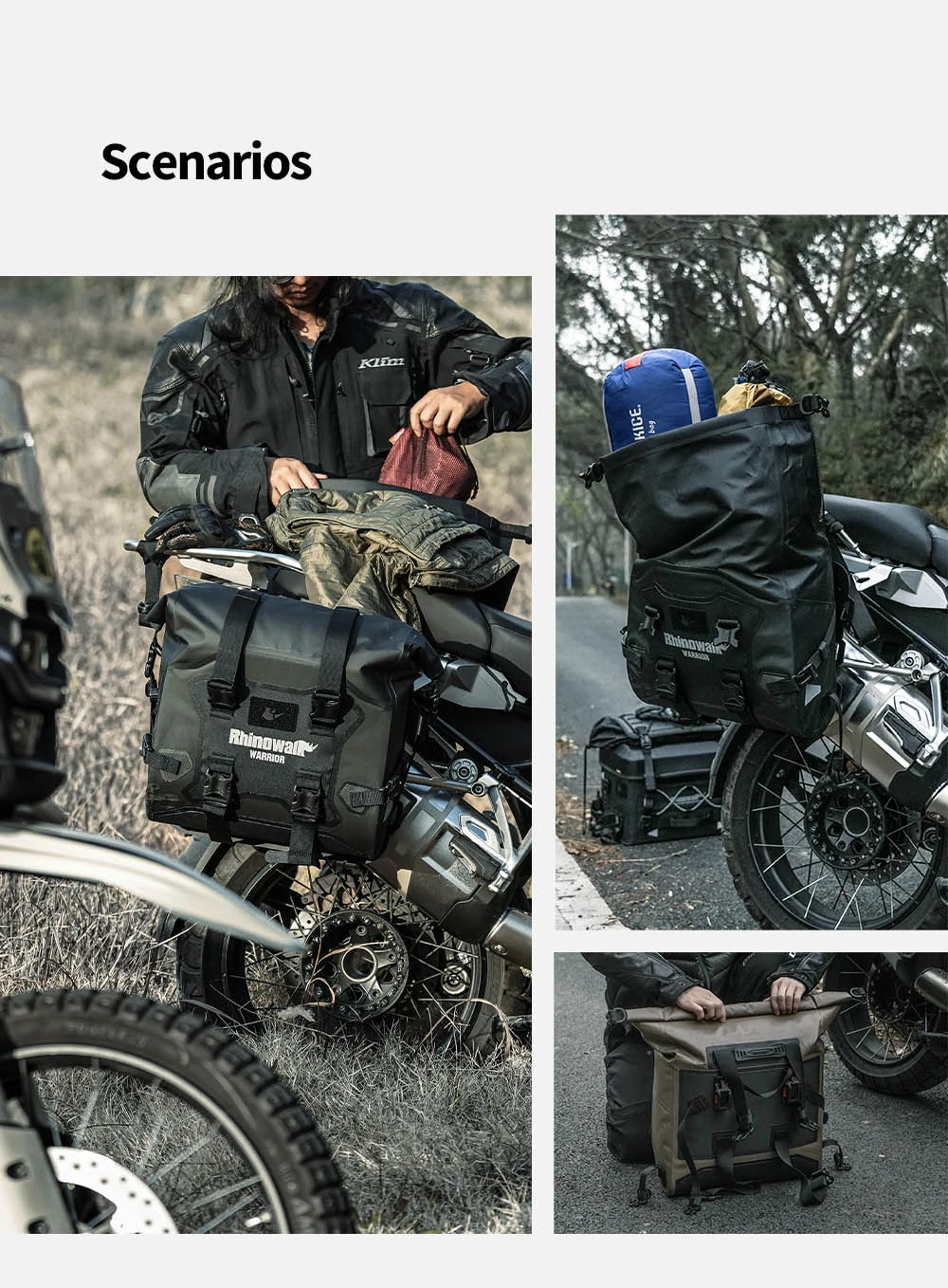 - > Bolsa Lateral para Motocicleta Rhinowalk com Liberação Rápida 24L Impermeável para Armazenamento de Bagagem com Placa de Suporte Interna