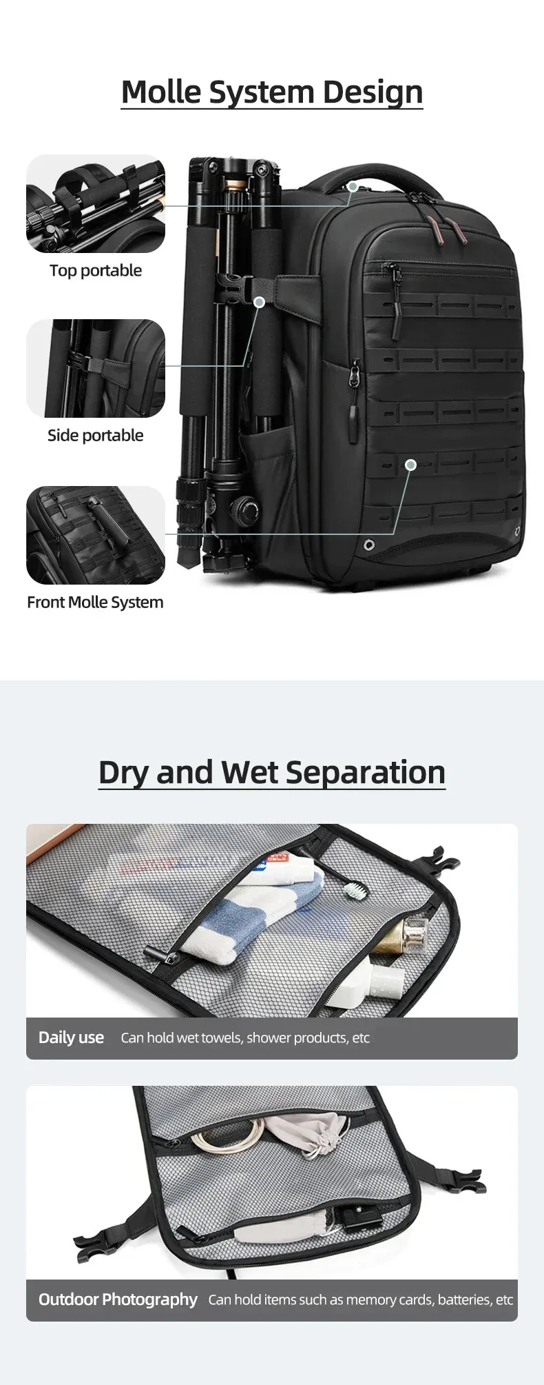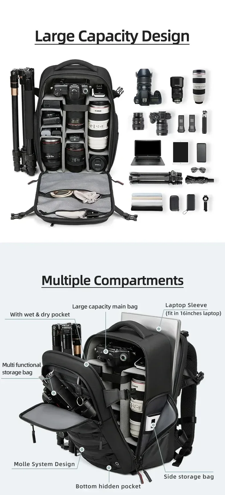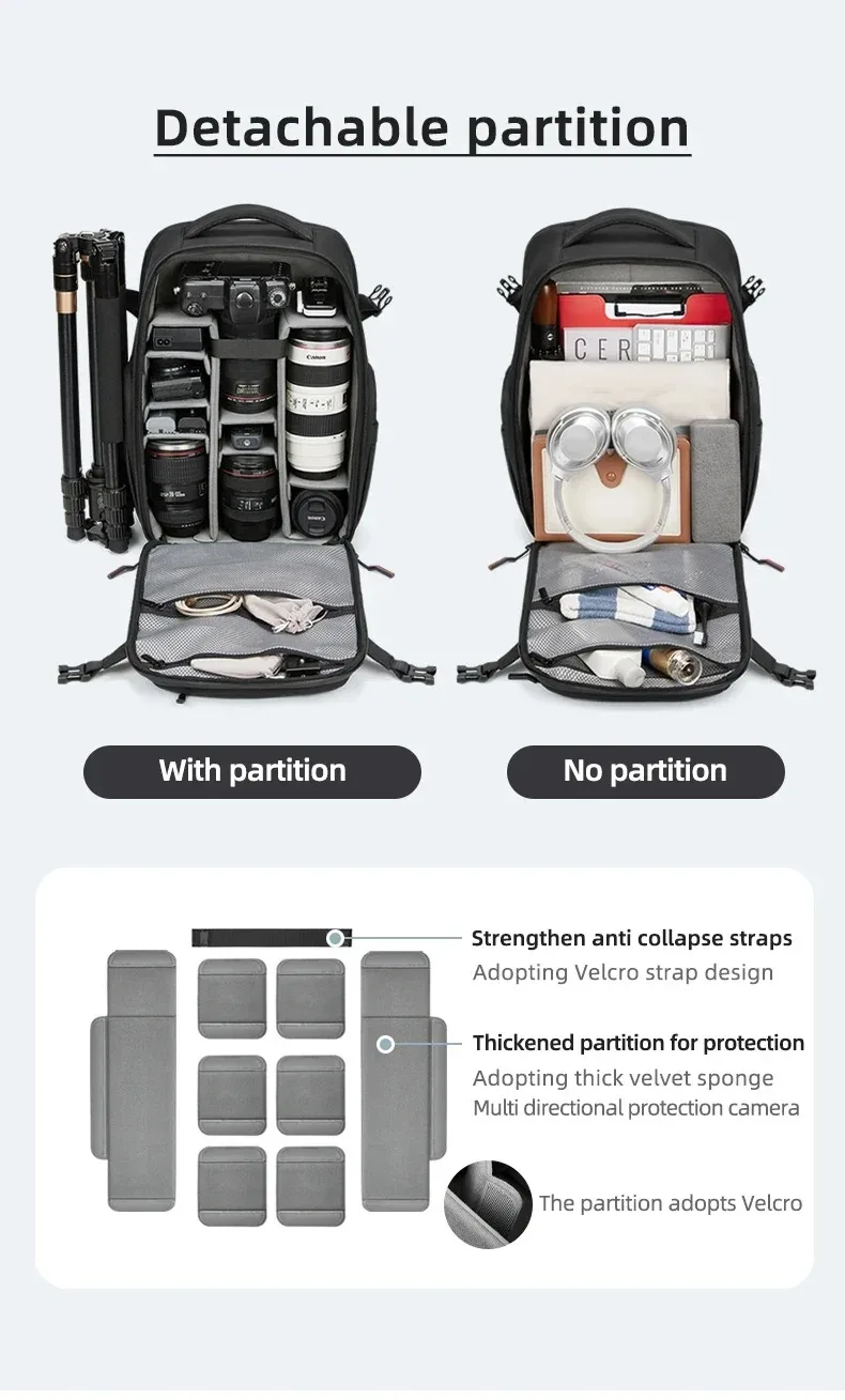 - > Bolsa para câmera slr, grande capacidade, multifuncional, à prova de respingos, drone, bolsa digital, separação seca e molhada, computador, mochila integrada