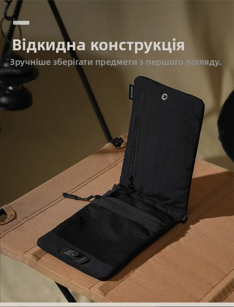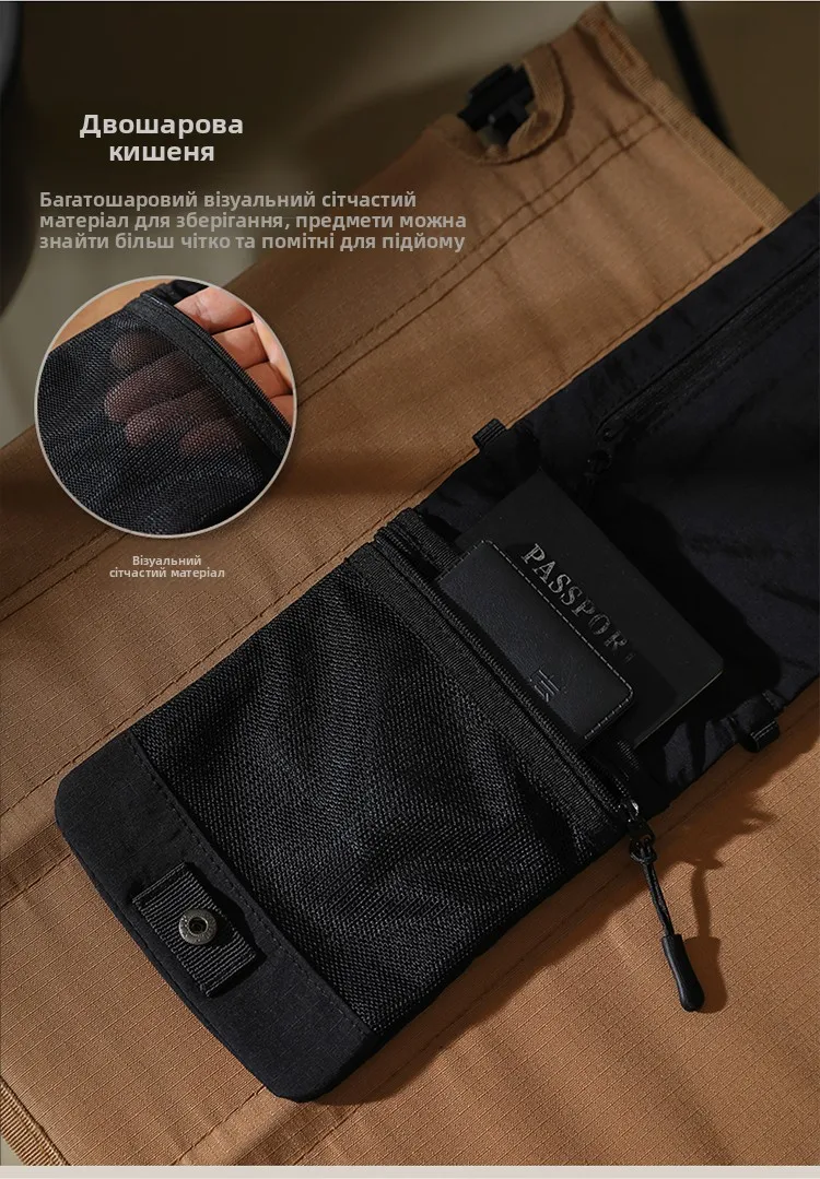 Equipado com tecnologia RFID, este saco garante a segurança de seus documentos e cartões de crédito.