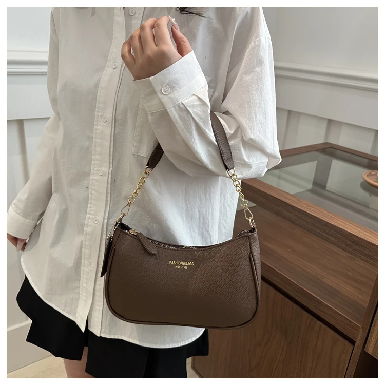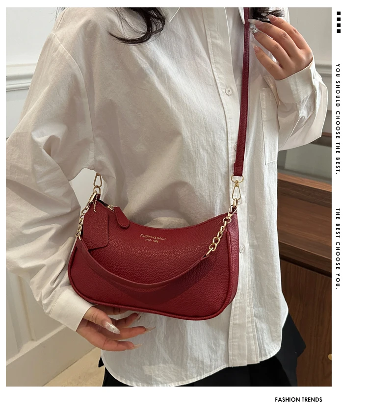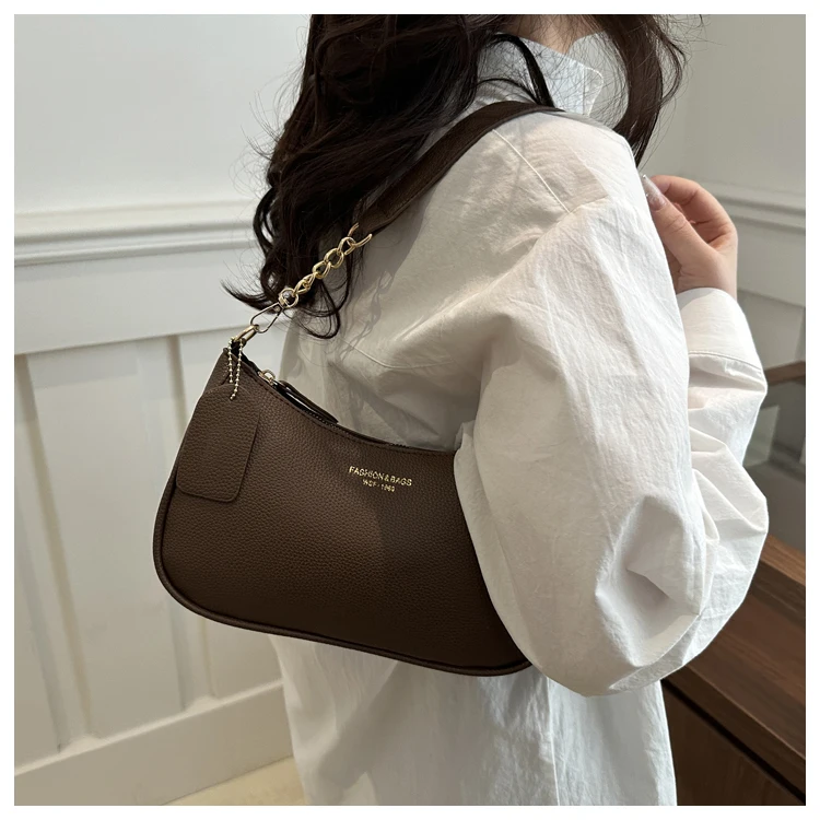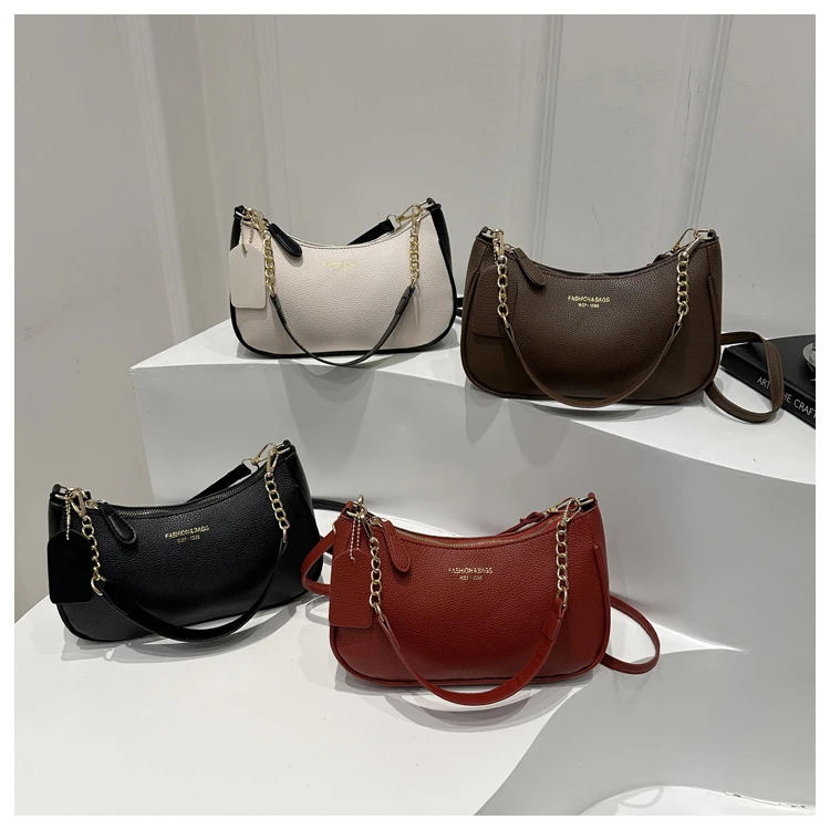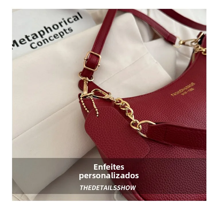 Bolsa Transversal Casual Fena da Moda, Bolsa de Ombro com Alça Única, Tamanho Pequ, Couro PU, Cor Sólida, Coleção Prim...