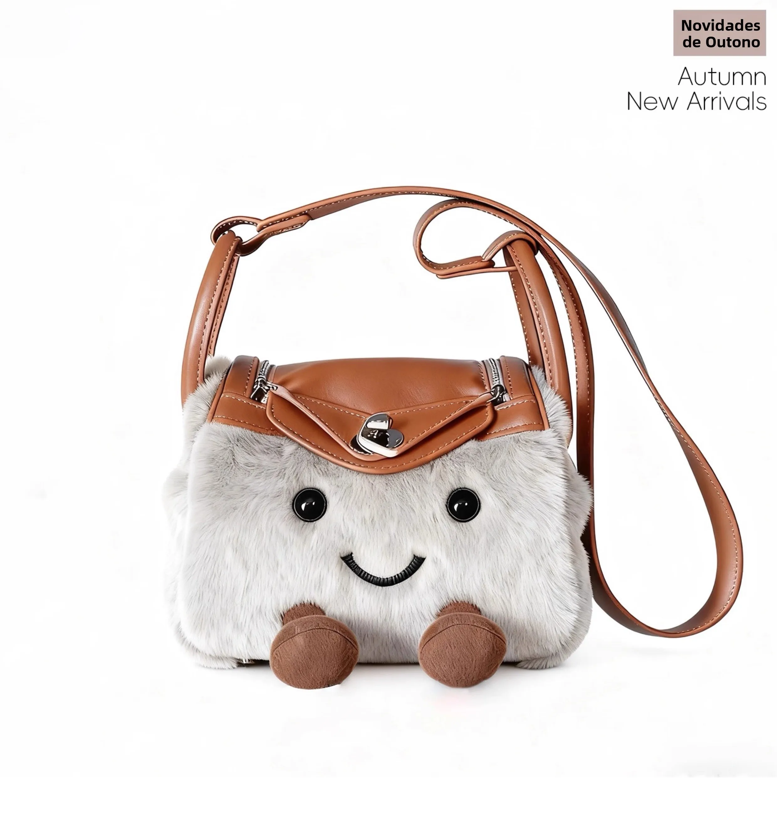 Bolsa Transversal de Pelúcia Fofa Fena: Nova Coleção Outono/Inverno com Design de Boneca, Versátil e Moderna, com F d...