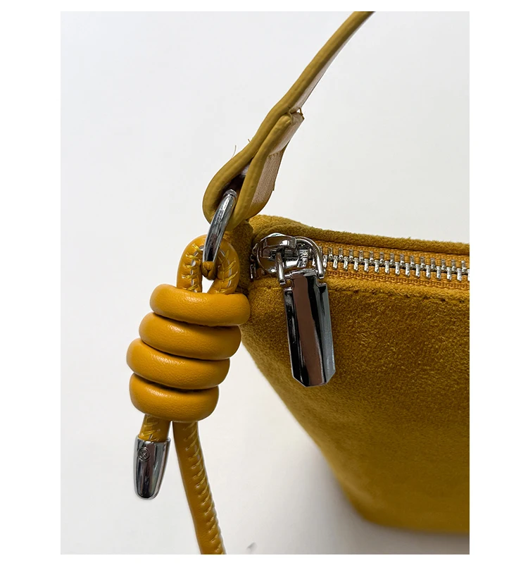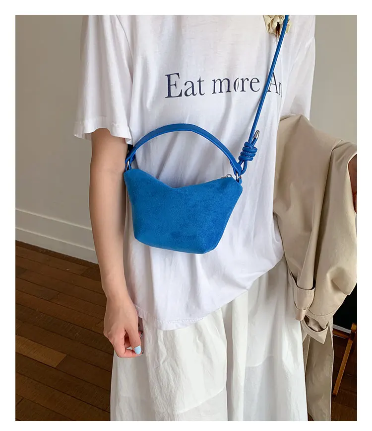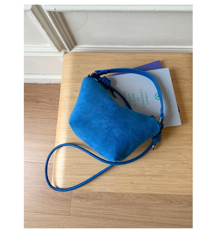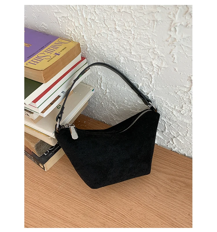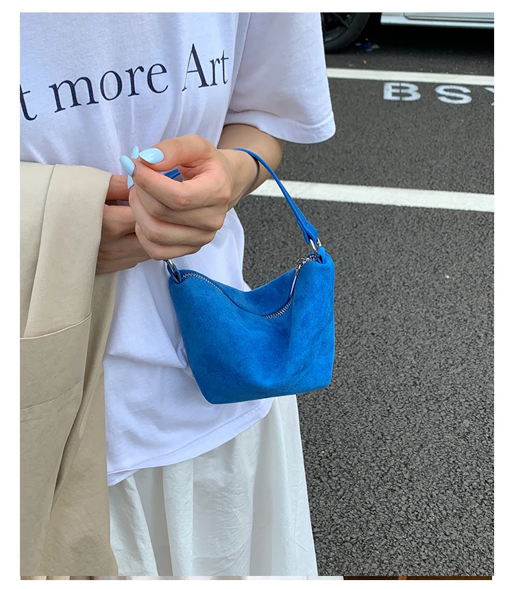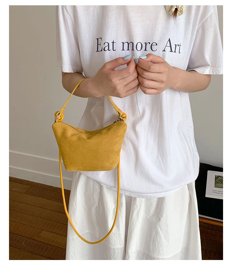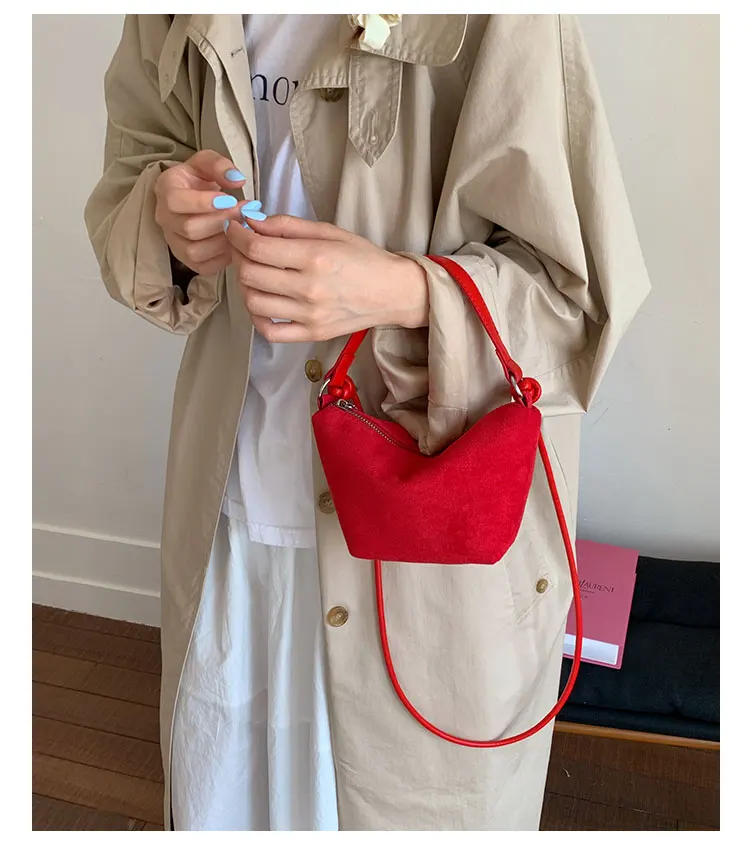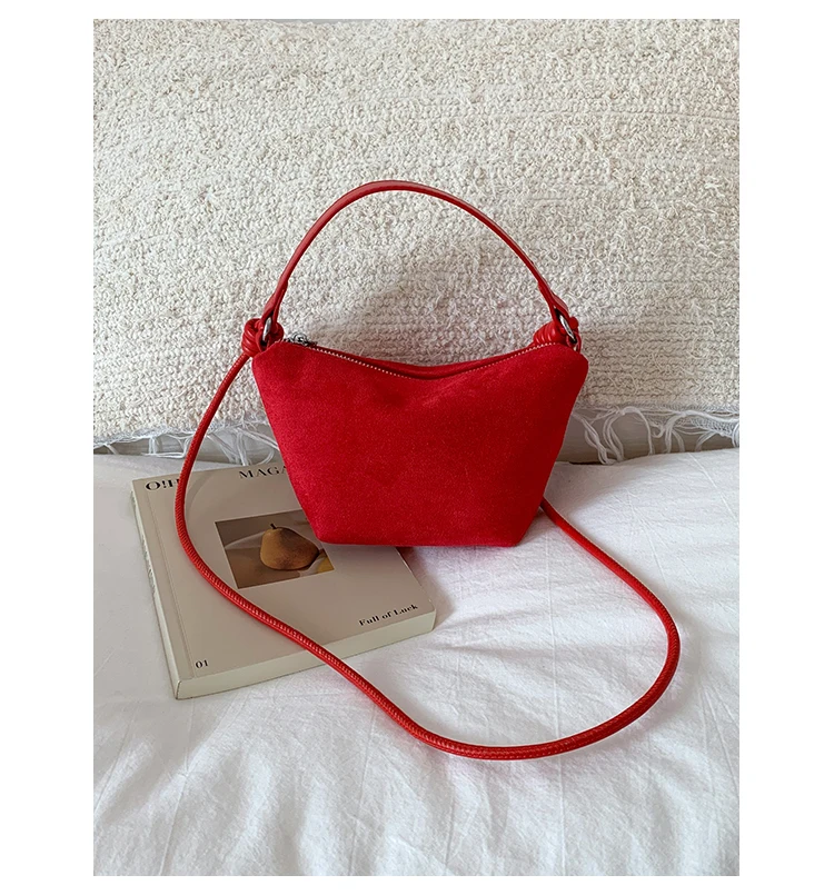 Este pequeno bolso de couro de camurça apresenta um estilo coreano, combinando elegância com um toque vintage.