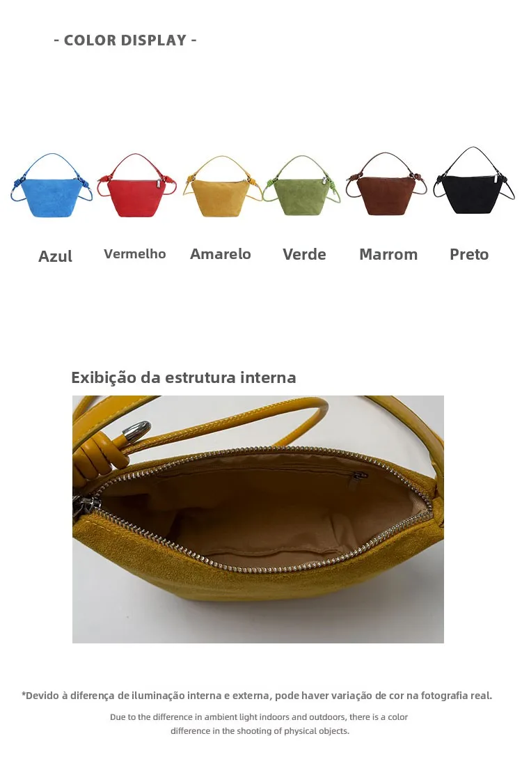 Bolsa Transversal Pequena de Camurça Colorida Estilo Retrô para Celular, Bolsa de Mão Moderna e E para Jovens - Coleçã...