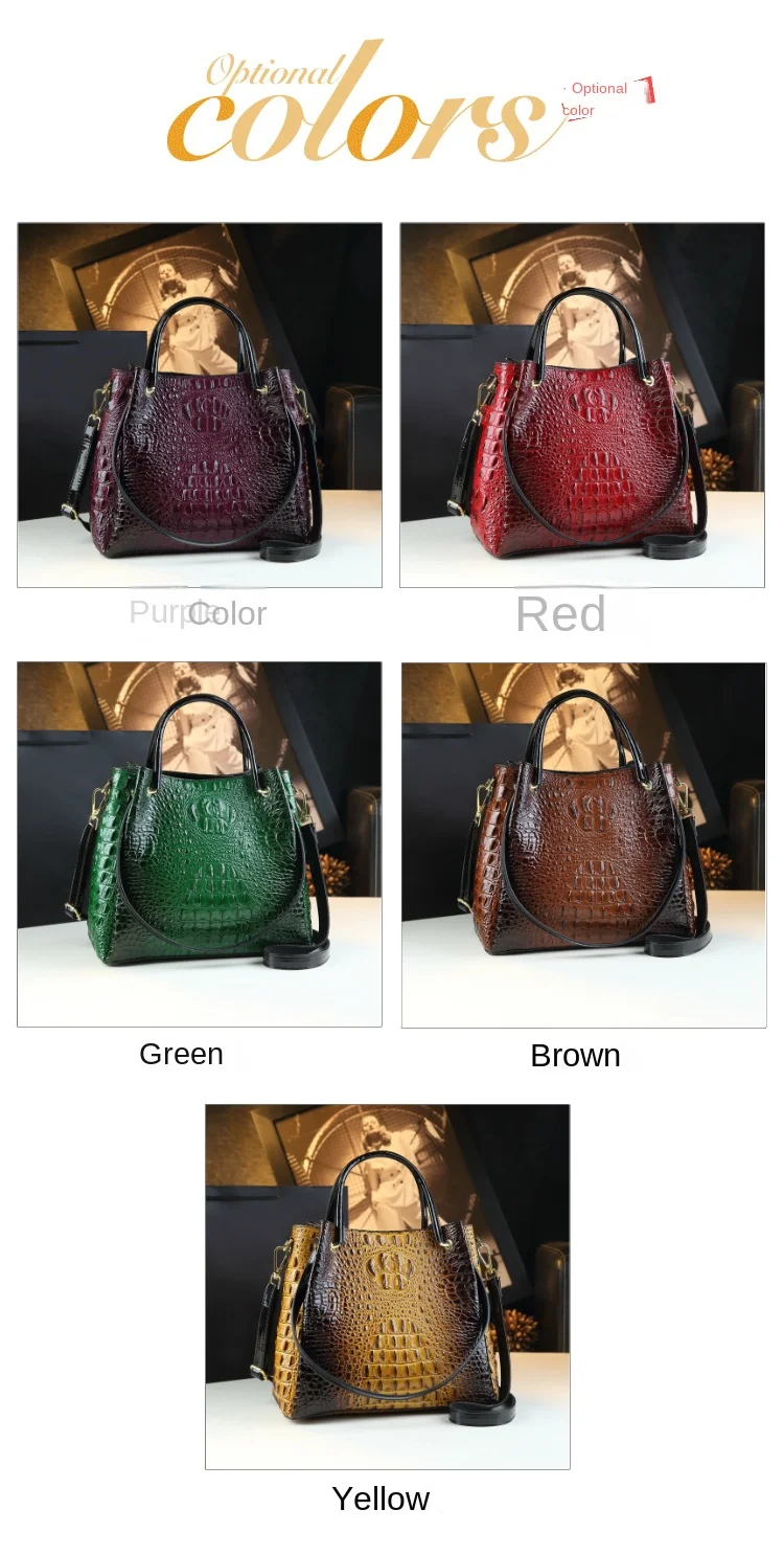 - > Bolsas femininas de couro genuíno nova sacola moda crocodilo impressão balde saco retro ombro mensageiro sacos tendência 2025