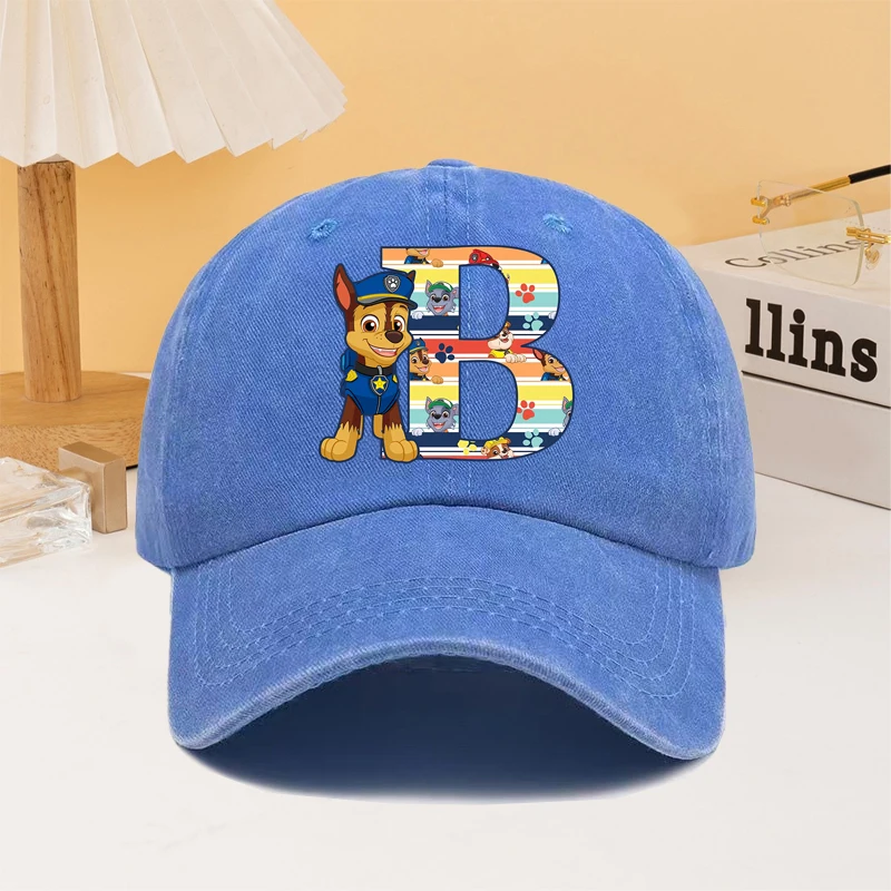 - > Boné de beisebol da moda da patrulha pata para homens mulheres dos desenhos animados carta A-Z impresso bonés de pico masculino feminino verão hip hop guarda-sol chapéu