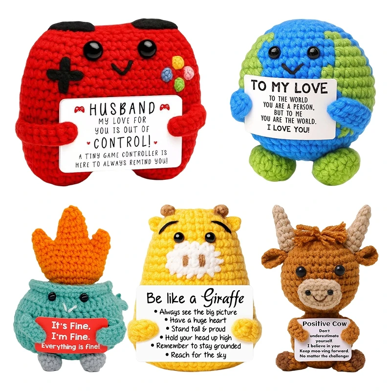 - > Bonecas de Crochê Positivas: Enfeite Artesanal de Mesa, Animais Tecidos, Artesanato em Miniatura para Presentes de Aniversário