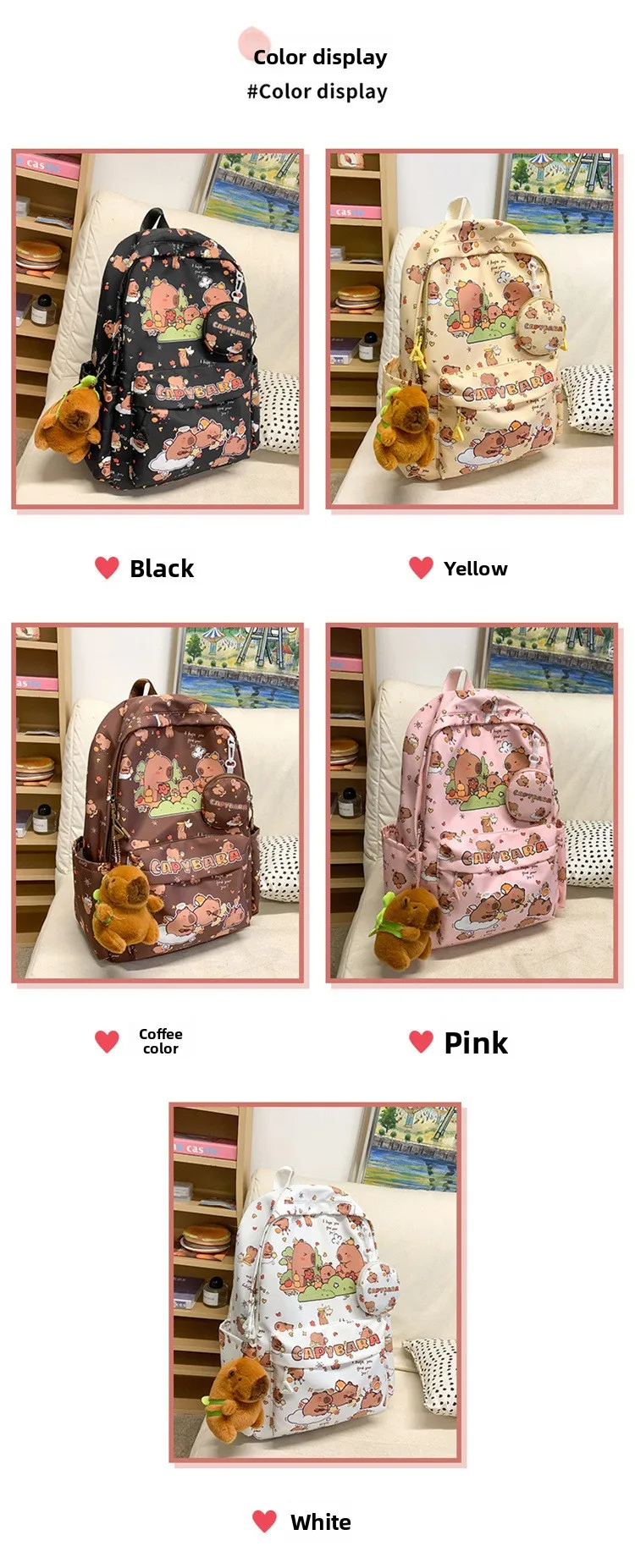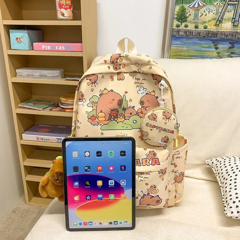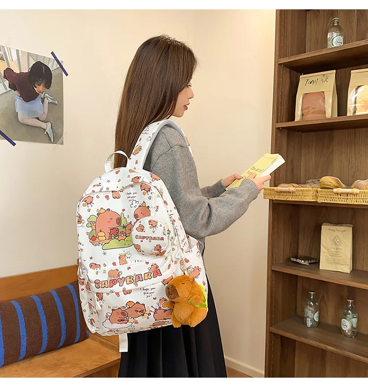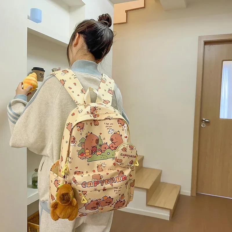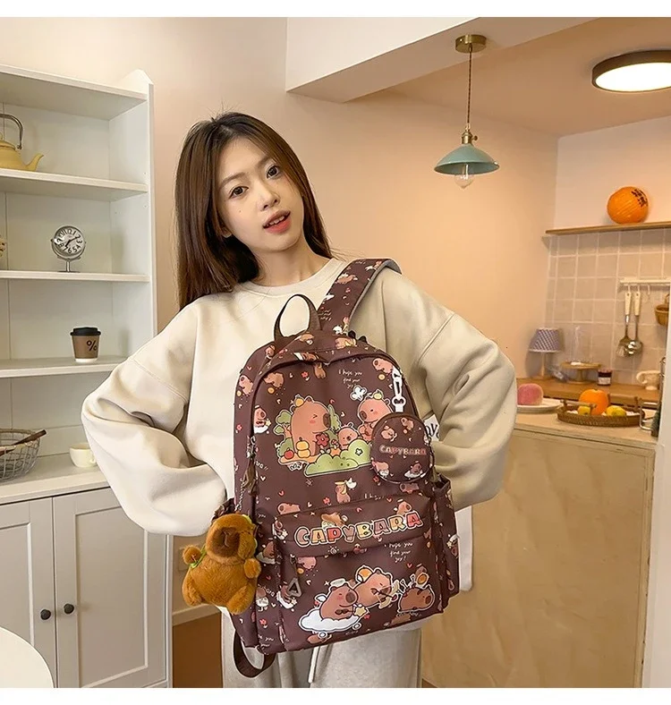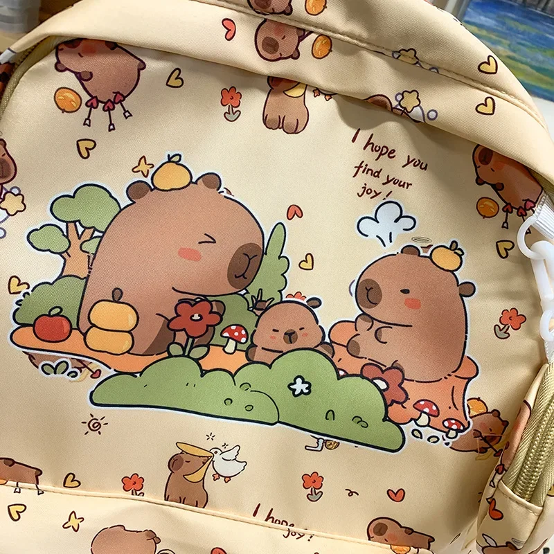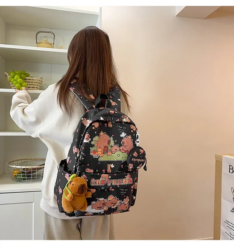 - > Bonito capivara mochila para meninas meninos estudante adolescente crianças mochila feminina bonito casual sacos de escola crianças presente aniversário brinquedo