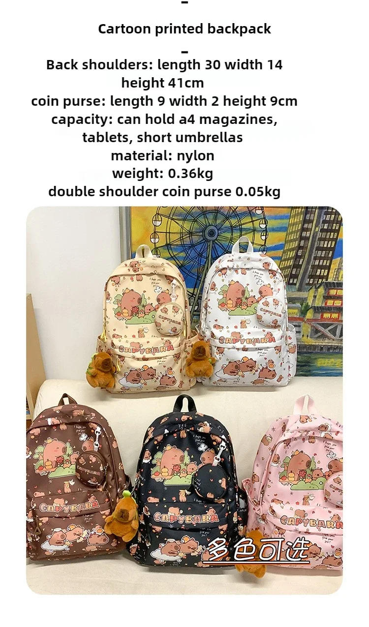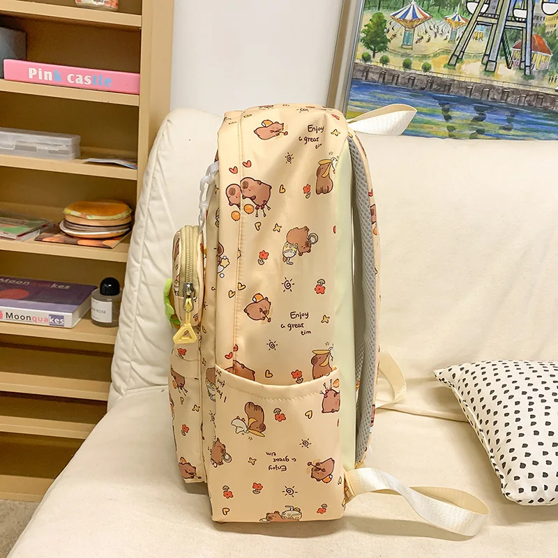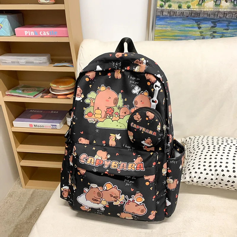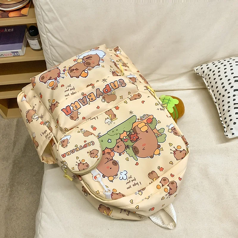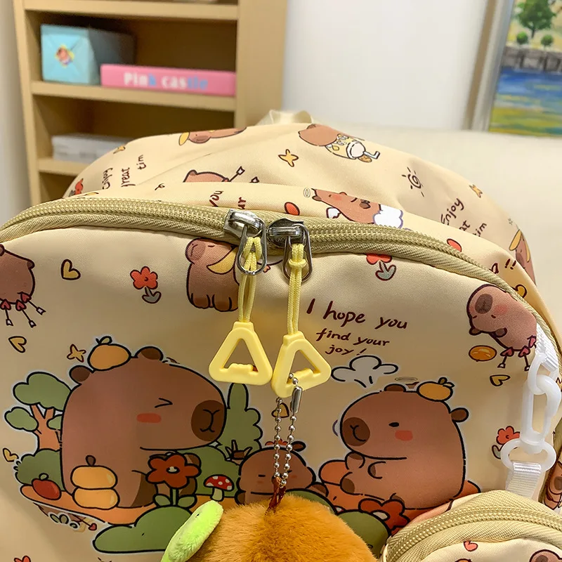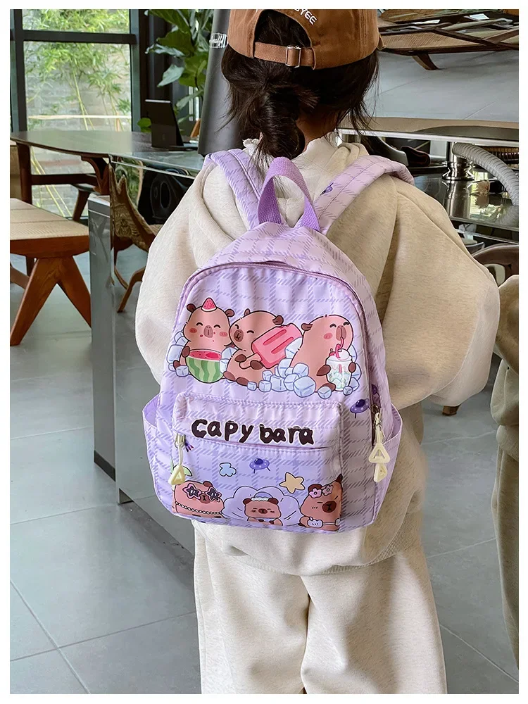 - > Bonito capivara mochila para meninas meninos estudante adolescente crianças mochila feminina bonito casual sacos de escola crianças presente aniversário brinquedo