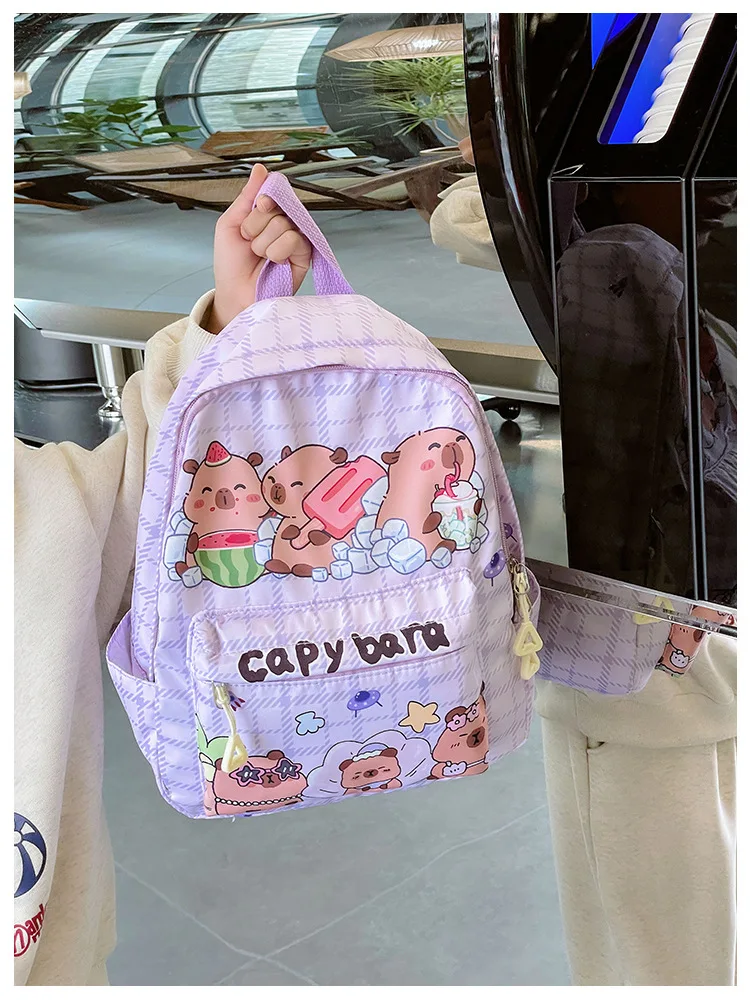 Bonito capivara mochila para meninas meninos estudante adolescente crianças mochila feminina bonito casual sacos de escola crianças presente aniversário brinquedo