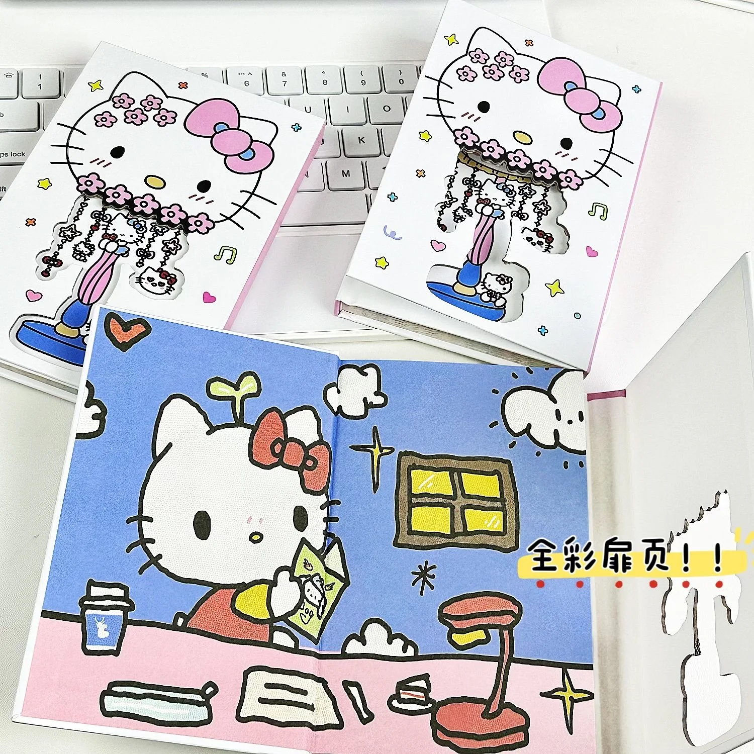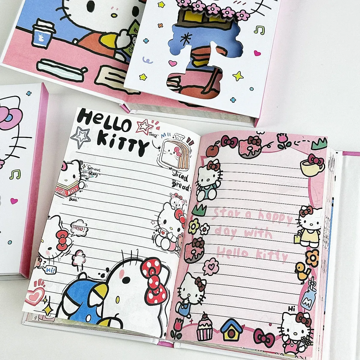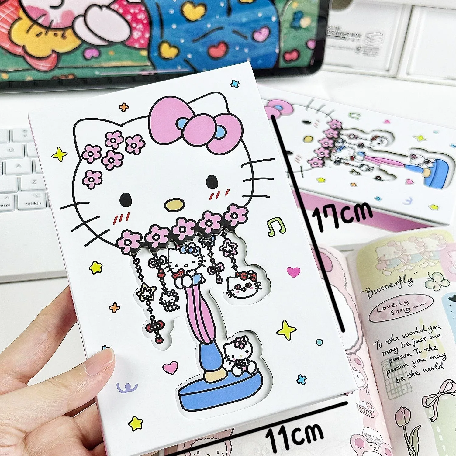 estilo: Caderno manual de três folhas com capa rígida da Hello Kitty, com design vazado.