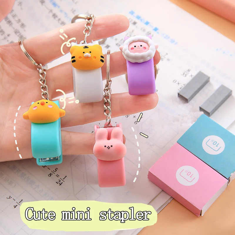 - > Bonito mini grampeador portátil grampo estudantes pasta de papel papelaria escola material de escritório kawaii grampeador ferramentas de ligação