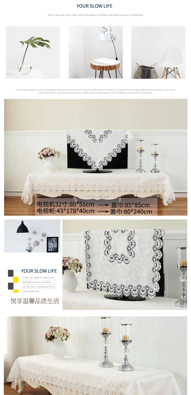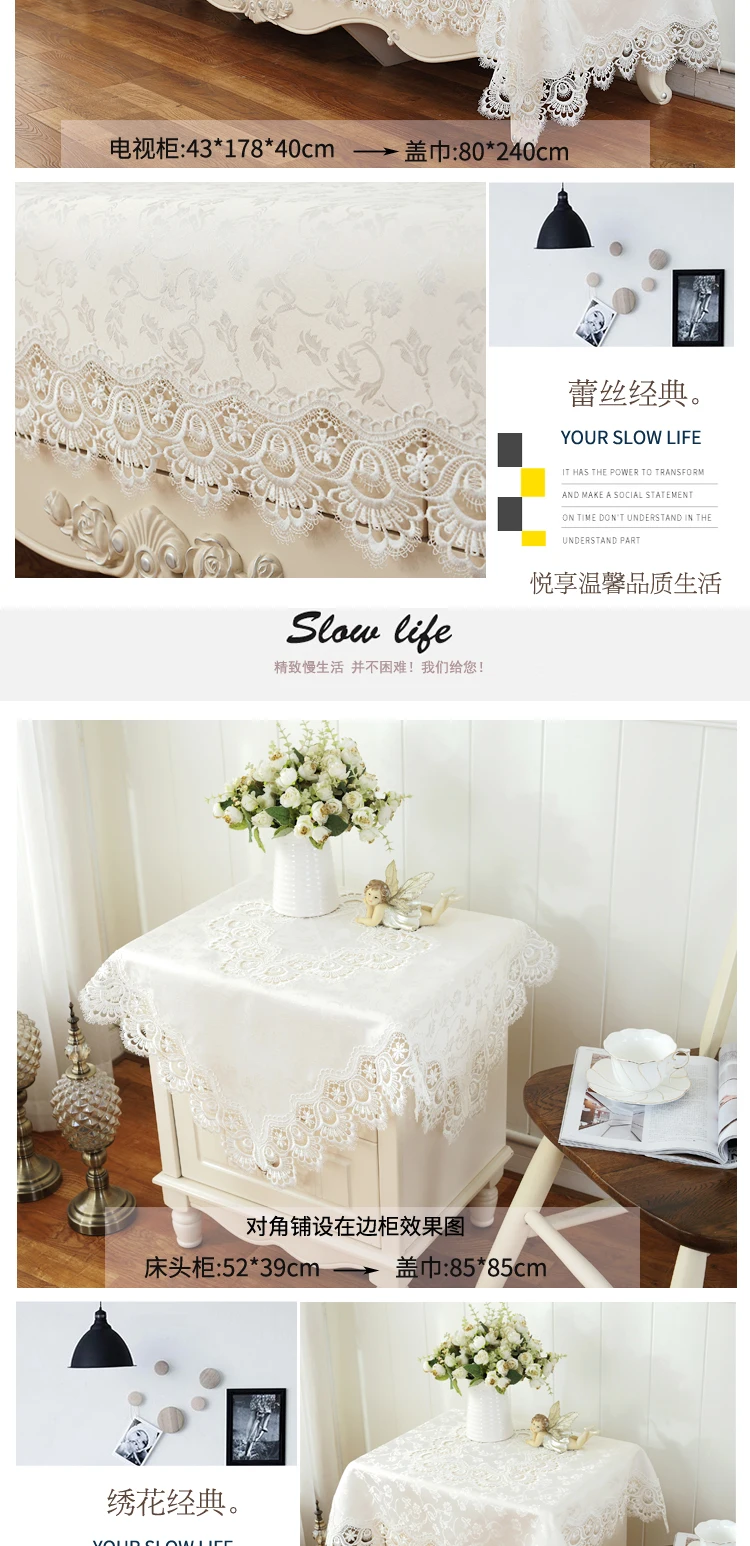 Bordado Jacquard Cetim Cobertura De Mesa, Creme Europa Toalha De Mesa, Pano De Mesa De Jantar, Flor De Renda, TV Gabinete Poeira Pano