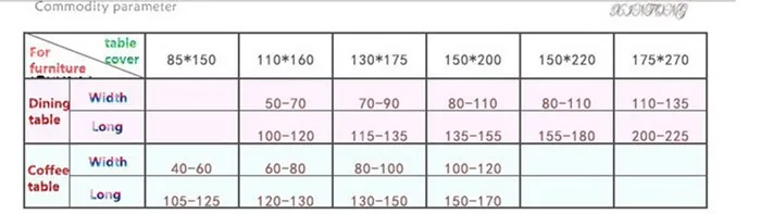Comprimento = comprimento da mesa + (50 ~ 60cm, então quatro lados inclinam 25 ~ 30cm)