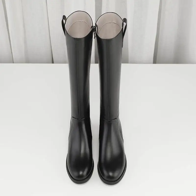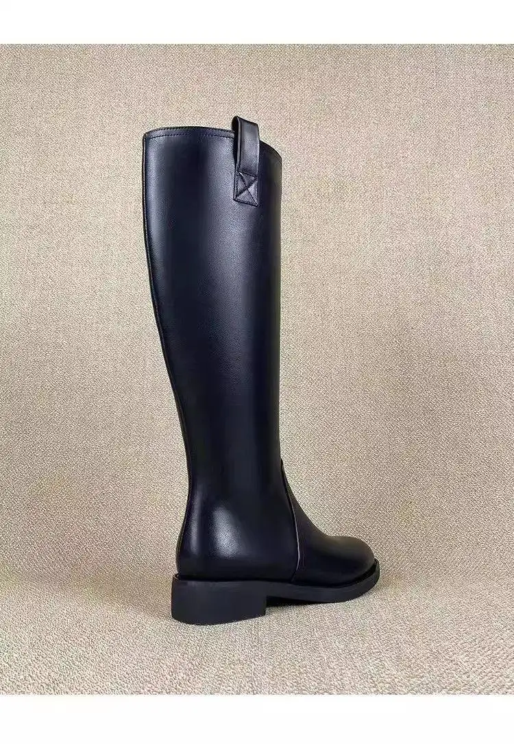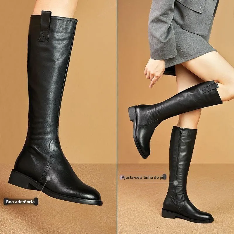 Bota Fena Longa de Cano Baixo com Zíper Lateral, Estilo Caviro, Platorma Impermeável, Nova Coleção Outono/Inverno, V...