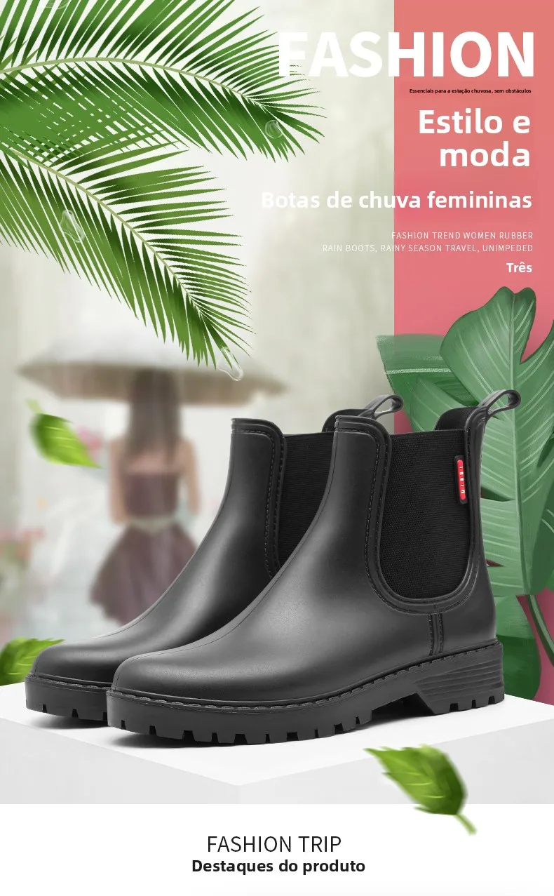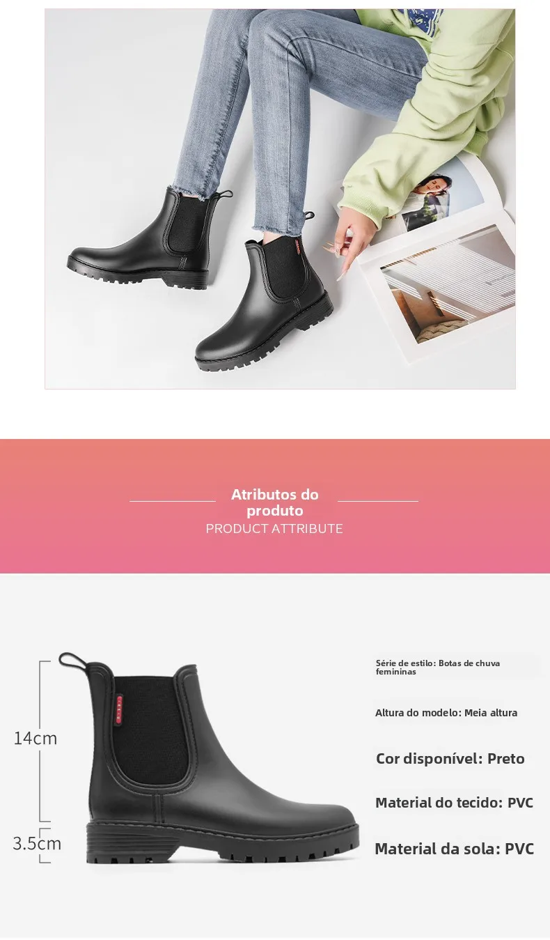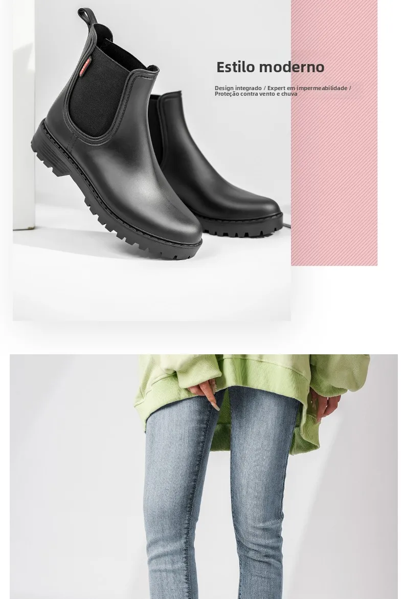 Com um estilo europeu moderno e elegante, estas botas de chuva são perfeitas para quem procura um look fashion e prático.