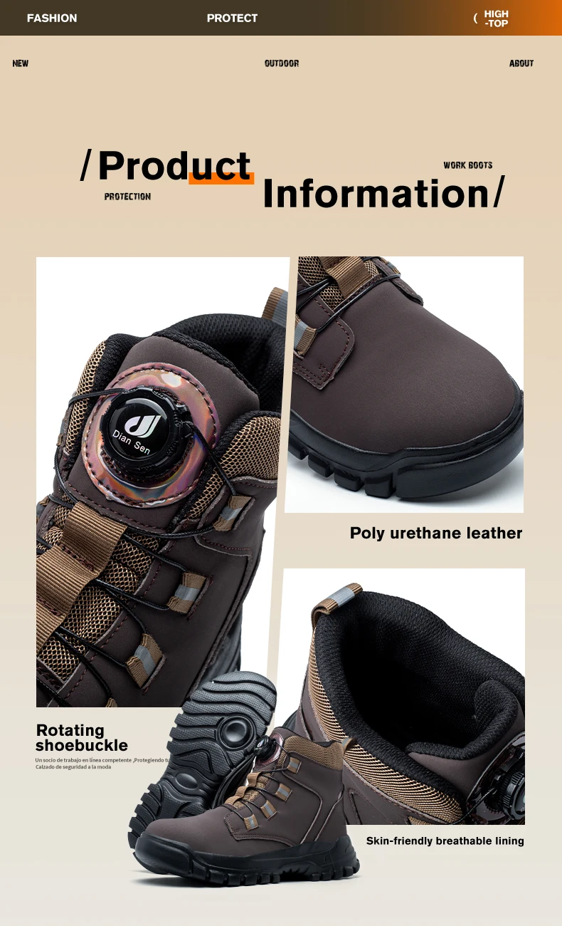 - > Botas de segurança impermeáveis para homens, Botas de trabalho em aço indestrutível, Anti-Smash, Resistente a facadas, Sapatos de motociclista