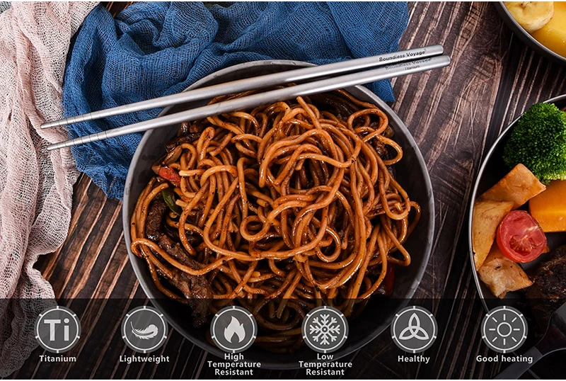 Boundless Voyage Square Titanium Chopsticks, Chop Sticks redondos ultraleves, Sushi Sticks de cozinha reutilizáveis, Louça para piquenique, 23cm